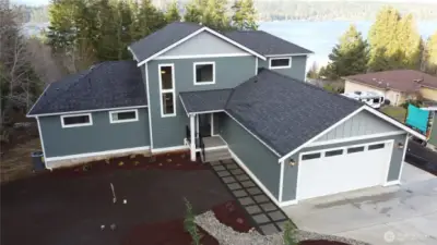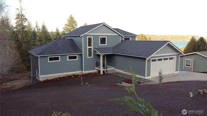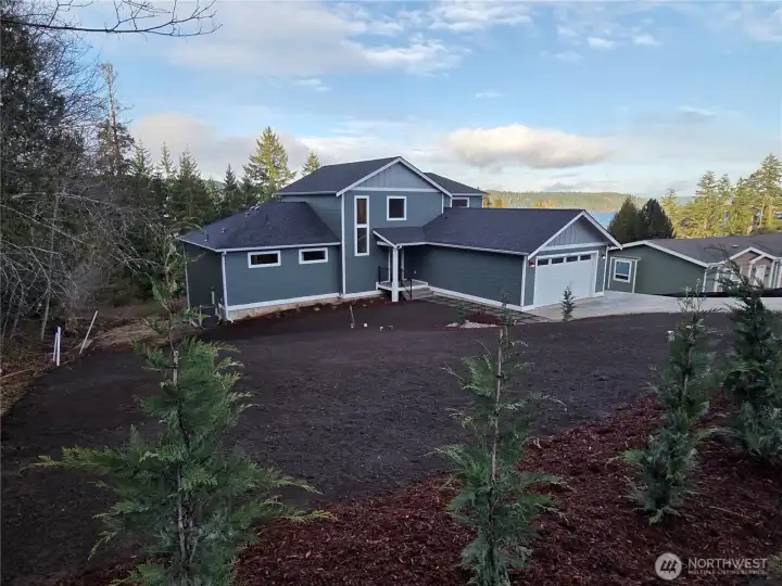 New construction, just completed and move in ready. 2,317 total sq. ft, with primary bedroom on the main floor. Soak in the Hood Canal views from almost every room! LVP flooring throughout the main floor. Large open kitchen with quartz counter tops, walk in pantry and a huge island. Full height tile backsplash, stainless appliances and tons of storage! Open family room with tons of natural light and electric fireplace. Relax year round from your covered porch. Watch the eagles soar, snow fall in the Olympics and boats navigate the canal. Primary bath has large walk in tile shower & large walk in closet. Upstairs you'll find 2 bedrooms, bonus loft for a home office & bonus room as a 2nd tv or craft room. The crawl space has 10ft ceilings, power and plenty of space for storage or even a shop. Heat pump with AC. Ask about the interest RATE buy down with the builders preferred lender. MOVE in READY!