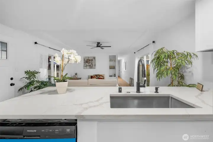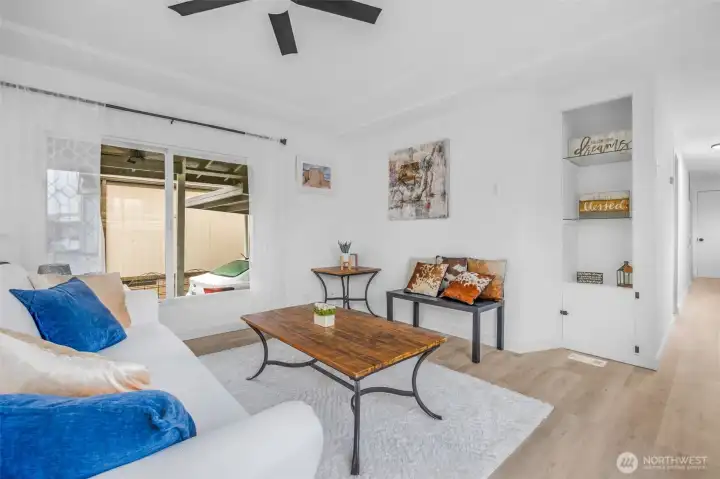 Step inside this beautifully remodeled home where modern finishes meet everyday functionality. The open-concept layout boasts brand-new LVP flooring, fresh interior paint, and abundant natural light streaming through updated windows. The sleek kitchen features new cabinetry, quartz countertops, stainless steel appliances, and a spacious breakfast bar—perfect for casual dining or entertaining. The bathroom doubles as a laundry space and has been fully refreshed with a new vanity, fixtures, and washer/dryer set. Outside, enjoy a covered carport, fresh exterior paint, new front steps, and low-maintenance landscaping. This move-in-ready home is stylish, bright, and just waiting for its new owner to make it their own!