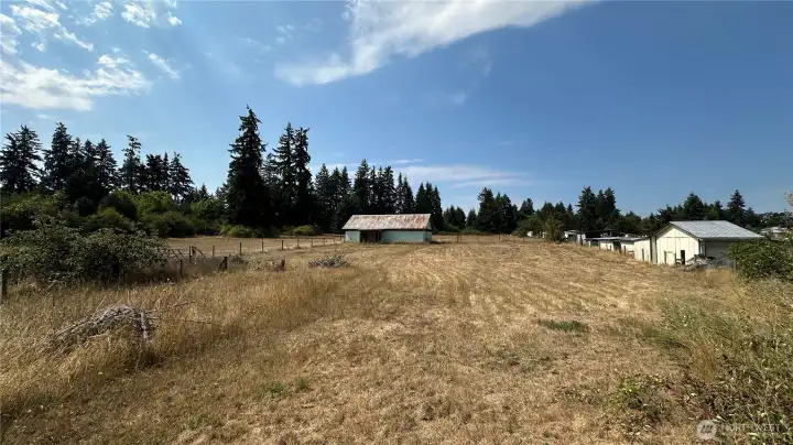 Beautiful flat 5.57 acre property with 1393 sq ft, fixer 2 bedrooms, 1 bath, and a detached garage that has a workshop and additional extra smaller room. A 50x30 barn, fully fenced section of pasture land behind the house. Property includes a fully fenced dog section, a small green house, backyard deck and covered breezeway in between the home & garage. This place needs some TLC, most of the property is fully fenced and includes an additional .50 acre parcel. Located in the middle of town just off of the Hwy 507, within walking distance to all stores and cinema.