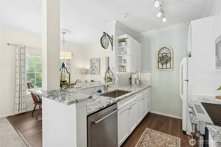 Contemporary fully renovated Condo with an attached Garage in desirable Bryn-Mawr Neighborhood. Centrally located, easy access to I-5, 405, & 167.  Bokara by the Lake is a gated community hidden in a lush greenbelt just 7-mi. from Downtown. The beautiful custom designed home Wow's with thoughtful details throughout: 9ft ceilings, open airy concept. New floors, custom wood moldings, designer paint, and built-ins throughout, including garage. The Kitchen offers new premium appliances, Granite counters, full mosaic backsplash & custom maple Cabinetry. Panoramic landscape & seasonal views of Lake Washington plus morning sun & evening sunsets in your private patio. This quiet corner end unit offers all the amenities of a single-family home.