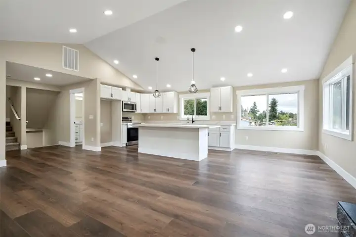 Updated Move in Ready 4 bedrooms plus 2 more additional rooms on lower level. You will love all the stylish updates inside and out. All new flooring and paint, kitchen cabinets and granite counters and appliances. Bathrooms are all updated and fixtures throughout the home. Attached 2 car garage with huge detached huge 900 sq ft carport. Nice size flat lot 1.31 acres with apple trees. Close in town and close to JBLM. This is the one!