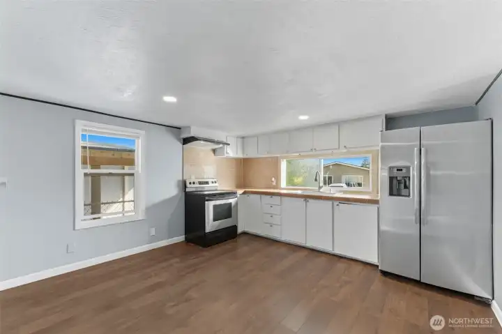 ALL AGES PARK lovely single Wide on One of the Best Lots/ Camelot Mobile Park is family and pets friendly. Wonderful 3beds 1 bath living room kitchen w/all stainless-steel appliance stays. laminate flooring home in great location. Close to shopping and freeway. New Roof. playground, recreational area, plenty parking, storage apple tree cherry tree Clubhouse, Playing ground and Swimming pool