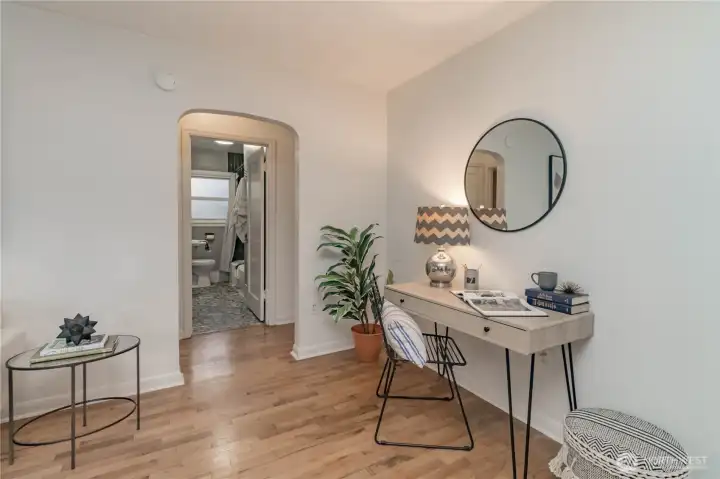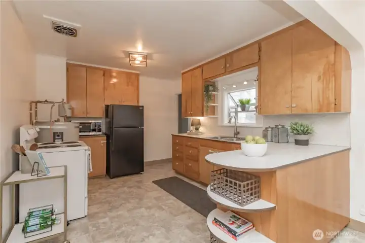 Nestled in the heart of Fernhill, this delightful 1949 cottage is a place where history meets heart. Updates include several new black Anderson windows (w/ lifetime transferable warranty and 0 transference), forced air, a newly built/stained premium cedar fence, and the water heater is less than 1 year old. Original archways and hardwood floors take you back - while modern touches like a fully tiled shower and stone mosaic flooring in the bathroom bring today's comfort. Enter into the sunny living room or entertain in the kitchen and dining room! A fully fenced yard with 2 separate spaces makes room to roam or dogs to play safely. 2 car detached garage and additional street parking? Say no more! Easy access to freeways, shops and downtown!