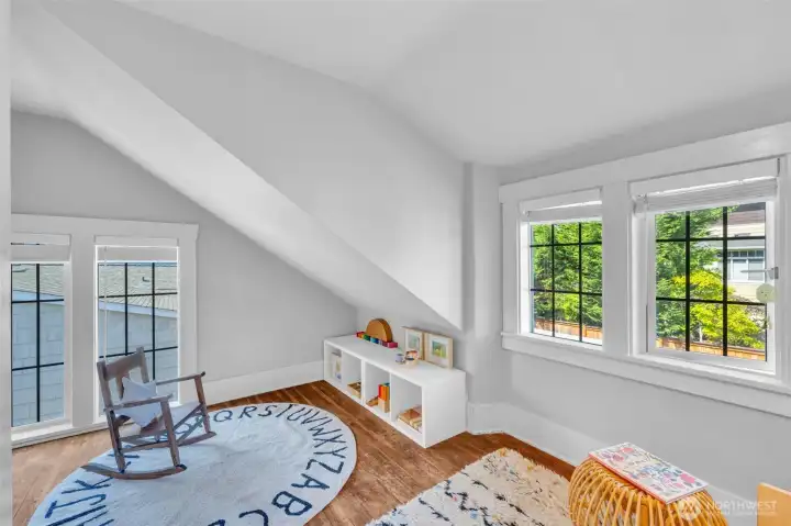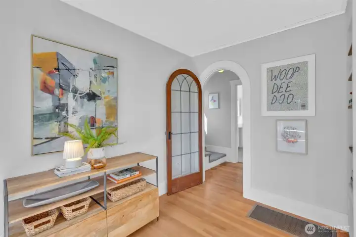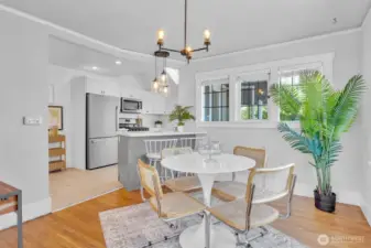 Explore this charming 1922 Craftsman home offering views of Mt Rainier and LK WA. Enjoy timeless elegance throughout, featuring leaded-glass windows that fill the home with natural light, beautiful oak hardwood floors, and a cozy gas fireplace. The updated kitchen seamlessly connects to the dining area, making it perfect for entertaining. Up top, you'll find three bedrooms—one ideal for a home office or easily convertible into an additional bathroom. Located on a fenced corner lot, the yard boasts garden beds, a patio, and plenty of space for outdoor activities. Conveniently close to Seward Park, Martha Washington Park, and the lively shops and eateries of Columbia City.