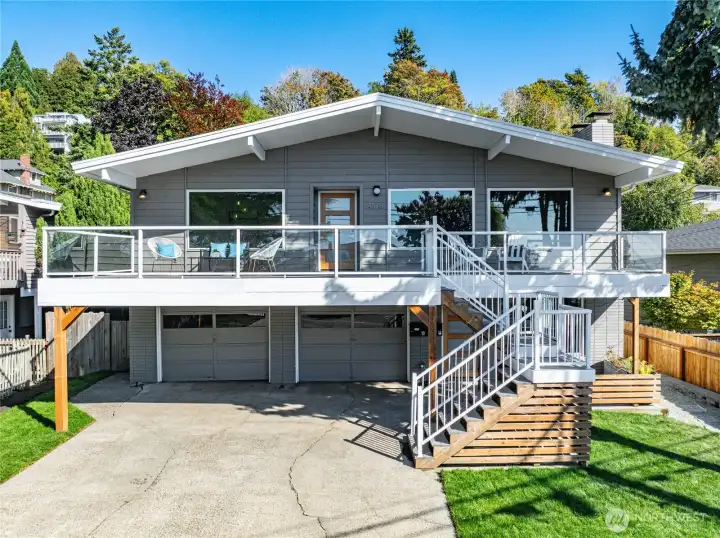Take in ever-changing sky, sound, and mountain views from this spacious Beach Drive home. The main level features stunning views, generous living spaces and formal dining room, the new kitchen opens up to a great room with fireplace, and 3 bedrooms including a primary suite all on one level. Extensively updated throughout. Relax on the oversized deck and enjoy dramatic sunsets or storms rolling in. The versatile lower level offers a second living space (legal ADU), kitchen, 2 bedrooms & 2 baths—ideal for multi-generational living, guests or rental income. Home can be used in so many ways. 2-car garage, fenced backyard, and A/C. Close proximity to Alki & Lincoln Beaches, and California Junction for the ultimate coastal lifestyle.