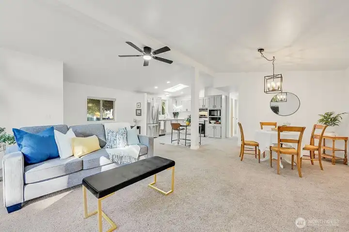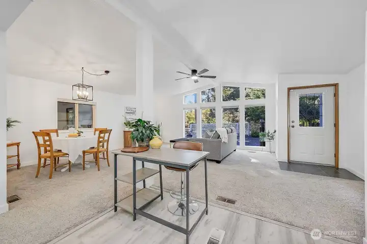 Nicely nestled between Sequim and Port Angeles, this beautifully updated home offers the perfect blend of convenience and privacy. Perched on a peaceful one-acre lot with stunning views of the Olympic Mountains, you’ll enjoy both tranquility and easy access to nearby amenities. Inside, you'll find fresh paint, new LVP flooring, and stylishly updated bathrooms all within an open, single-level floor plan that makes everyday living a breeze. This well-maintained manufactured home also features a fully fenced front yard—perfect for pets—a handy storage shed, ample parking, and a covered carport. Bonus: RV hookup is already in place. Move-in ready and full of charm!