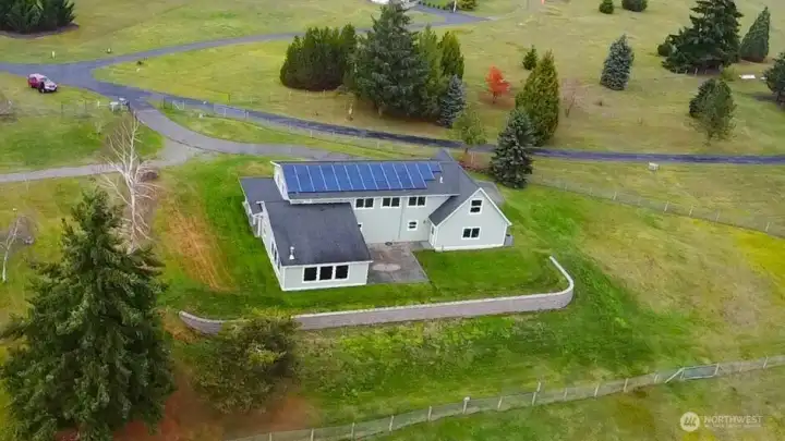 Perfect Horse Property with Stunning Views! 6.21 acres of country living with a 24’x36’ barn with 12-foot covered porch, insulated tack room, two large corrals, 30 amp service for your travel trailer, electric gate, and heavy-duty 2x4-inch galvanized fencing. Rare Mima mounds, seasonal blue Camas blooms, and sweeping territorial views including Mt. Rainier create a truly unique setting. The 3,079 sq. ft. home offers 4 bdrms, 3 bth, huge bonus rm, and a relaxing bubble jet tub. A spacious kitchen with quartz counters, walls of windows, and abundant natural light bring beauty indoors. Modern comforts include A/C, tankless water heater, & a large garage w/bonus rm for tinkering. 36 solar panels, enjoy power bills of just a few dollars/month.