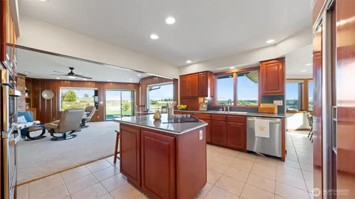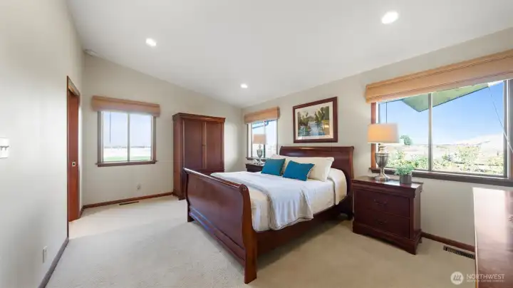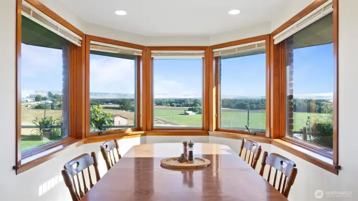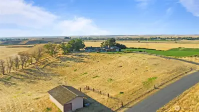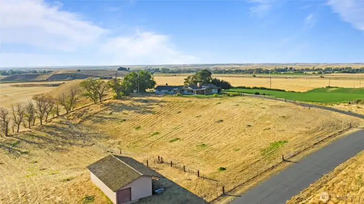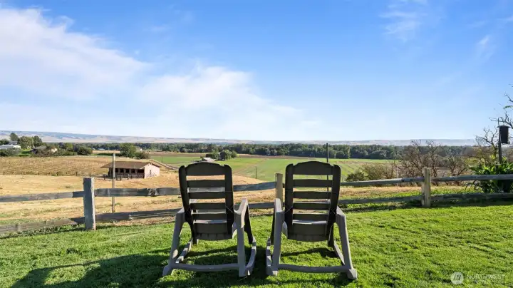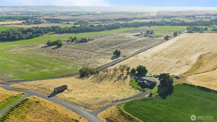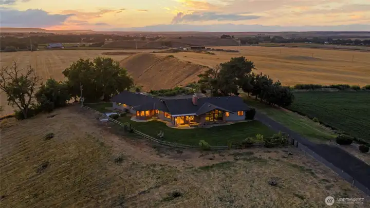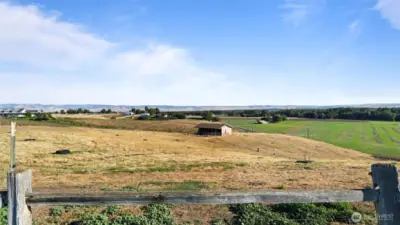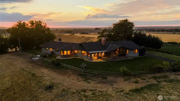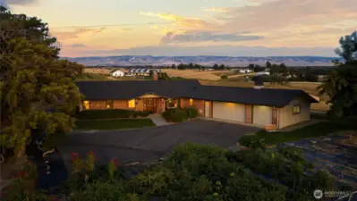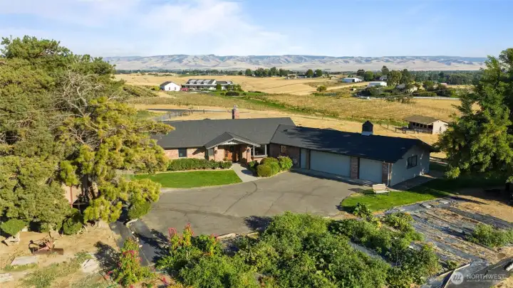 Nestled on a gentle hillside with sweeping 360-degree views of the Blue Mountains and beyond, this custom single-level home combines luxury, privacy, and country charm—all just minutes from downtown Walla Walla. The open floor plan features 3 bedrooms, 4 bathrooms, and soaring windows that fill the home with natural light. Elegant fireplaces create warm, inviting living spaces, while quality craftsmanship is evident throughout. A spacious oversized 3-car garage provides space for ample storage.    Set on over 4 irrigated and fenced acres, the property includes a 4-stall barn with tack room and storage, making it ideal for horses or hobbies. A partially finished basement provides additional living space w endless potential for customization.