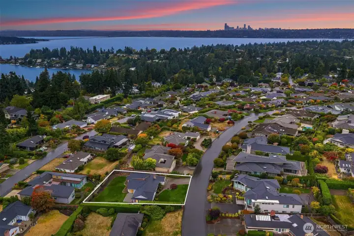 Perched in the coveted Vuecrest neighborhood, this property presents a rare opportunity to build your custom estate on a generous lot. Sweeping views of the Bellevue skyline provide a striking backdrop, elevating the potential of this remarkable setting. The existing home carries timeless charm, w a spacious family & dining room with vaulted ceilings, bright kitchen, & 4 beds including a sumptuous primary suite. Updates include recent interior & exterior paint, 2020 roof, copper plumbing + electrical, & dual pane windows. Rarely available so close to the city, the parcel offers privacy and versatility, inviting endless possibilities for your vision in one of Bellevues most sought-after communities, minutes from all the city has to offer.
