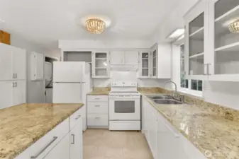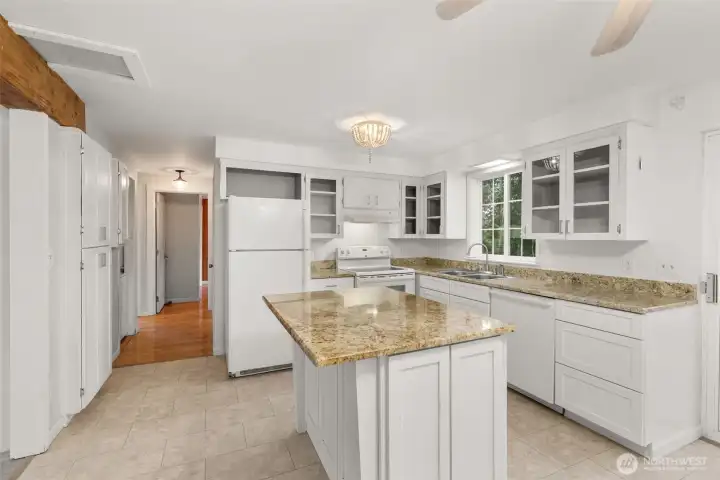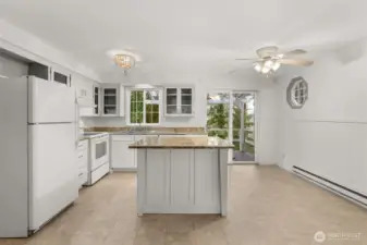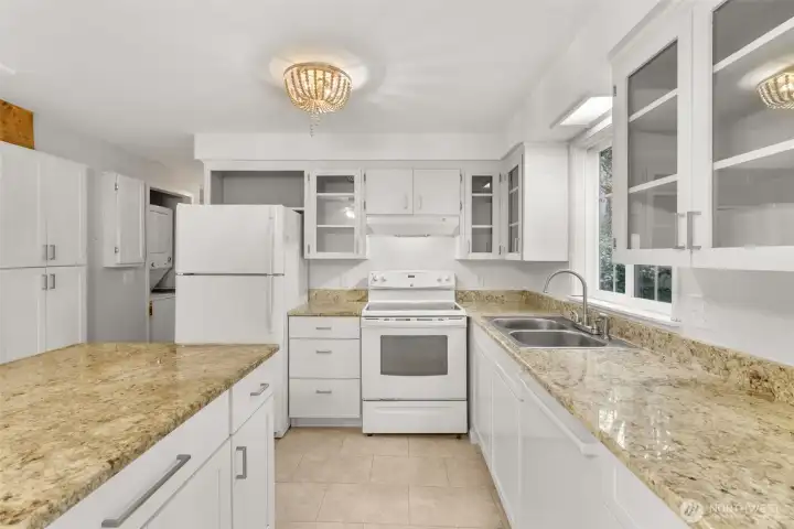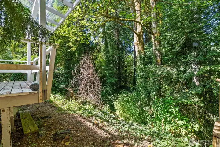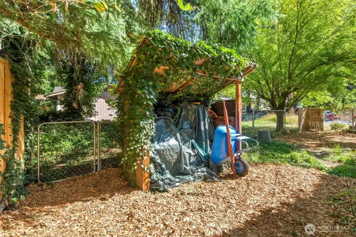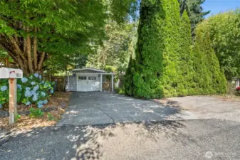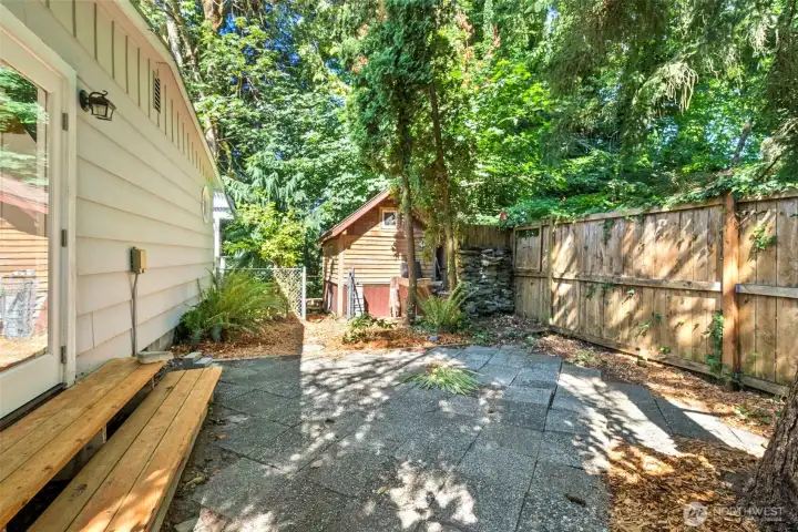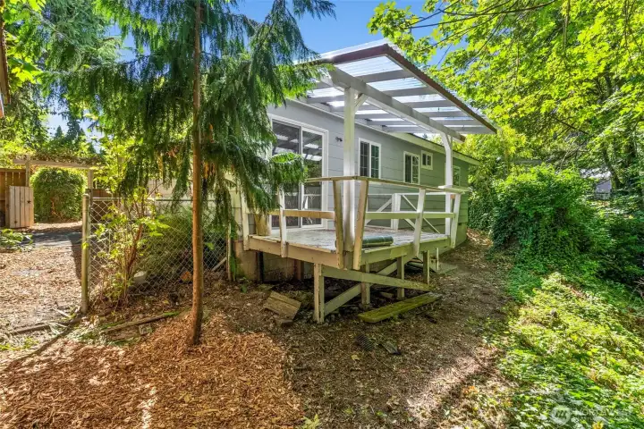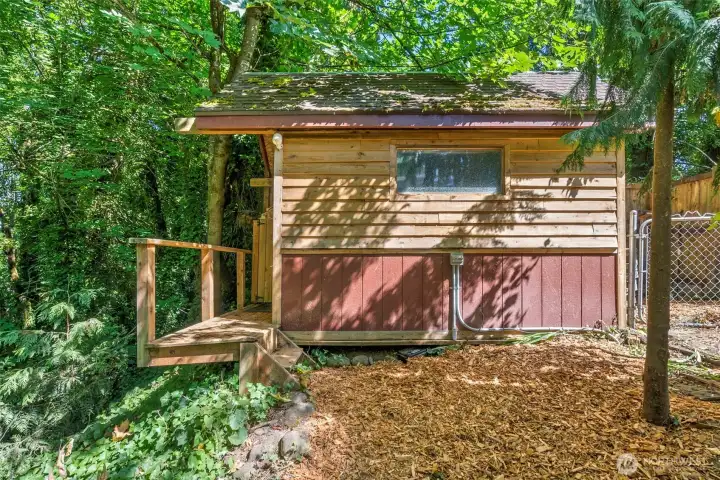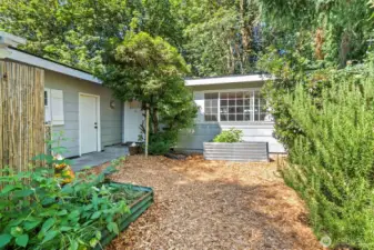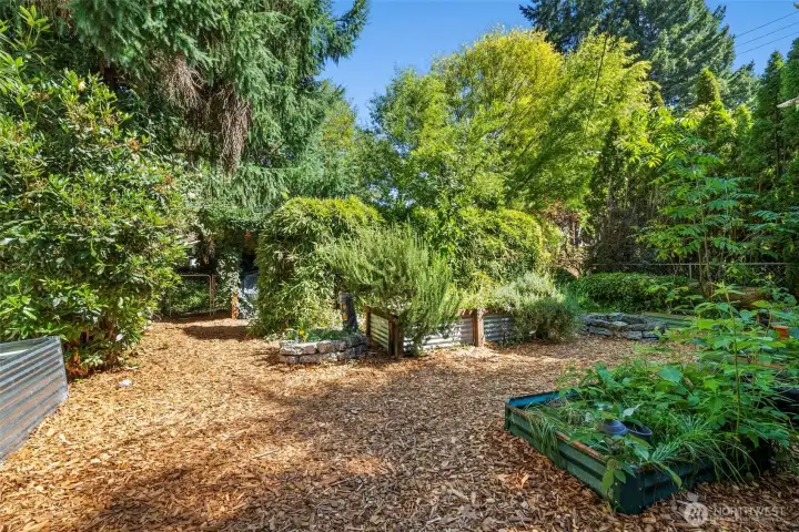 Charming cottage-style home backing up to scenic Watershed Park! This inviting 2-bedroom, 1-bath property features a new, updated kitchen with granite countertops and vinyl LVP flooring. Remainder of home is hardwood and has a cozy, light-filled layout. Enjoy outdoor living space with a covered deck, separate paved patio area, raised garden beds, and a fully fenced yard offering privacy and space to garden or relax. The lush herbal garden includes Rosemary, Calendula, Lavender, Sweetgrass, Elderberry, & Marshmallow, plus Raspberry & Blueberry plants. Includes an attached garage and separate building with loft. Close to I-5 and downtown Olympia.