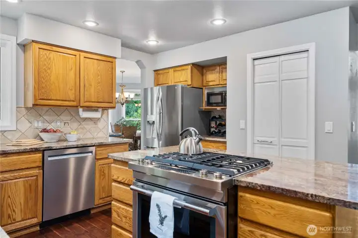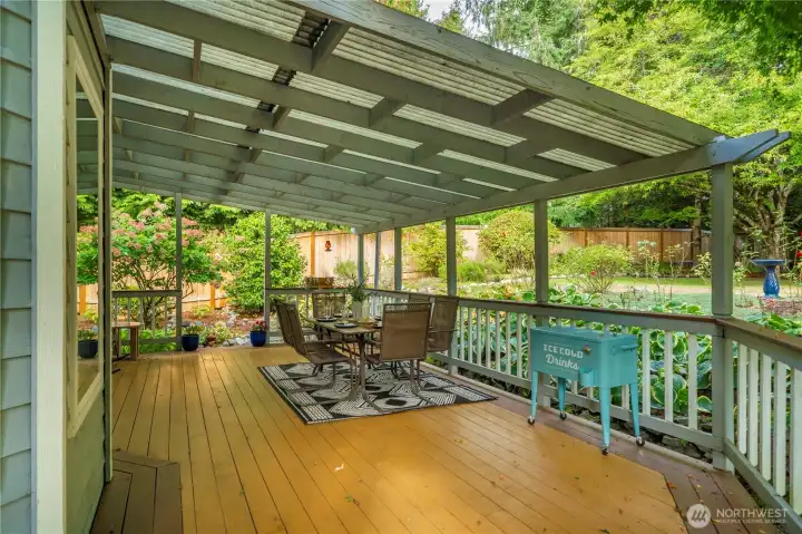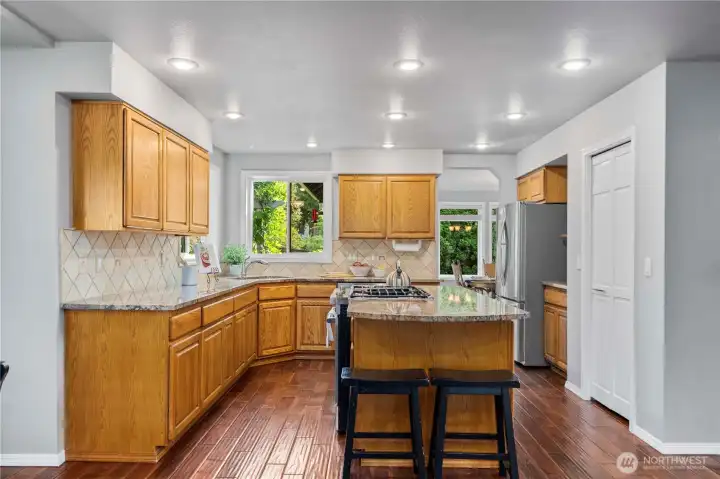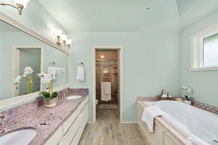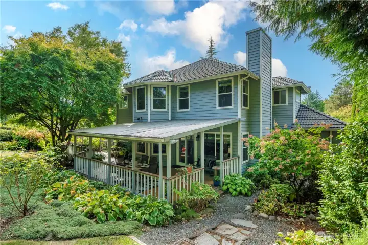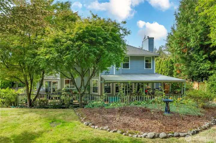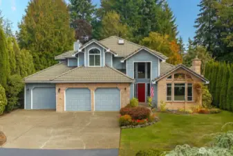 Just what you’ve waited for! Tucked on a serene 1/3-acre lot on a quiet cul-de-sac this home offers a storybook setting with lush grounds and a large covered patio perfect for year-round enjoyment. The thoughtfully designed floor plan provides all the right spaces—an office, living and dining rooms, plus a welcoming great room with an island kitchen and wet bar that opens to the backyard. The spacious primary suite features a 5-piece bath with a jetted soaking tub, and 3 additional bedrooms complete the upper level. Recent updates: 2-3 year old paint and carpet, newer A/C & refreshed crawlspace. Ideally located near Cedar Park trails, Lake Wilderness, the golf course & library—this move-in ready gem blends comfort, convenience & character.
