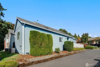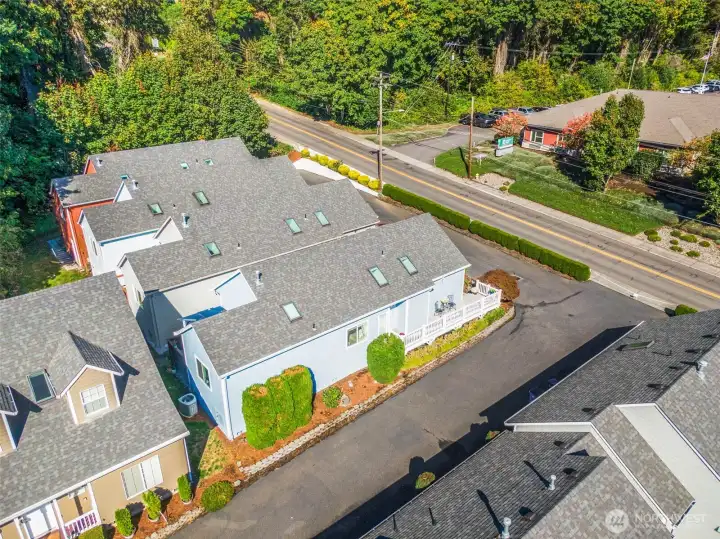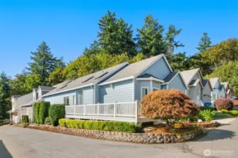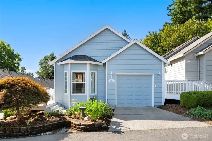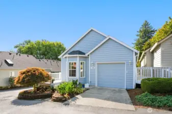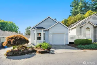 Just blocks from downtown Camas, this stand-alone condo combines single-family privacy with low-maintenance ease. On one level, the 2-bedroom, 2-bath, 1,026 sq. ft. home features vaulted ceilings, hardwood floors, and a gas fireplace. Each bedroom has its own bath, creating a double primary suite ideal for guests or shared living. The kitchen offers gas appliances, solid-surface counters, and a breakfast bar. Step out to a private deck overlooking protected green space where deer visit often. Updates include new exterior paint, a 10-year-old roof, and an EV charger. HOA covers exterior maintenance, insurance, and landscaping. Rentals allowed.