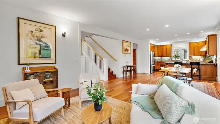 Tucked away in the quiet, historic Fort Ward on a dead end road sits this 2004 solid built Heritage 2x6 Construction w 4 Bed, 3.5 Bath, and two car attached HUGE garage. Large custom-built kitchen w Stainless appliances & the wonderful warmth of natural wood tone cabinets and granite counters. Large primary suite w walk in closet and all other beds upstairs. Main level including kitchen, great room, family room, and big foyer Covered wrap-around porch for all weather enjoyment. Mature trees, landscaping w room to garden. Well maintained and sunny. Timeless, classic Bainbridge Island living on the sunny south-end!