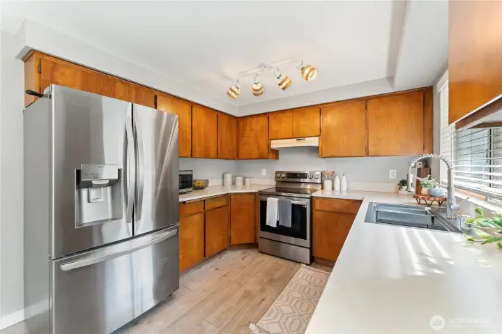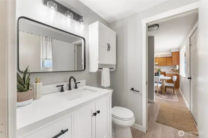 Charming Rambler in the Heart of North Marysville! Beautifully updated 3-bed, 1.5-bath located on a quiet dead-end street. Enjoy the freedom of no HOA & the comfort of thoughtful upgrades throughout. Step inside to find new flooring, updated bathrooms, inviting living area w/ wood burning fireplace & a heat pump perfect for staying warm in the winter & cool in the summer! The primary bedroom includes a private 1/2 bath w/ convenient access to the laundry area! Large fully fenced backyard features a brand-new shed for extra storage. There's also RV parking and a two-car garage, giving you plenty of room for all your toys & tools! Poss RV parking! Close to schools, shops,restaurants,transit! This home blends comfort, convenience, & community.