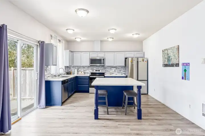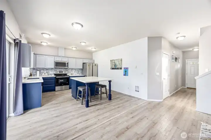 Instant equity! Paint and carpet upstairs and its ready!! Townhouse style condo with NO HOA!!!! Beautifully remodeled kitchen with large center island opening up to living room. LVP downstairs along with 1/2 bath. Upstairs are the 4 large Bedrooms including the primary with full bath! Full size washer and dryer included. 1 car garage with plenty of storage. Backyard is fully fenced with patio. Low traffic street with elementary school bus stop 1 block over . Close to Haggens and Safeway and easy on and off HWY 167. Interurban trail and parks just steps away! Home warranty included for your convenience. Make an offer-sold as is.