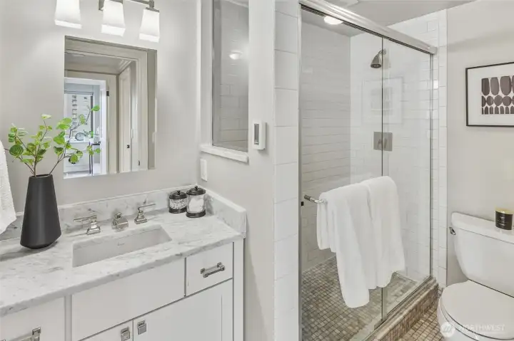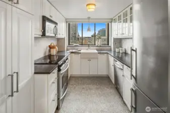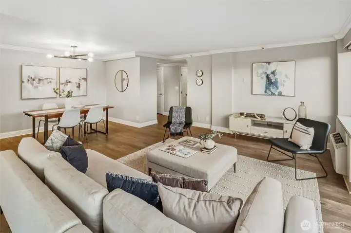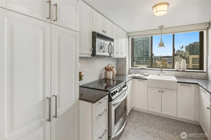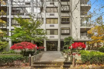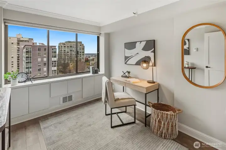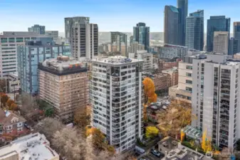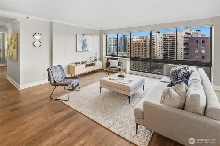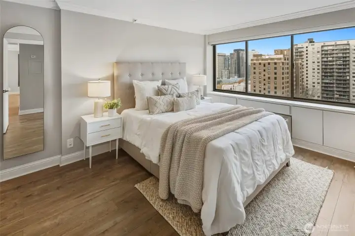 Centrally located in the heart of First Hill, this gorgeous corner unit w/breathtaking city views awaits you! Sleek & modern 2 bedroom 1.5 bath home, discover a thoughtfully curated space tailored for comfort & convenience. Featuring an in-unit w/d, smart automated blinds, laminate wood flooring, & heated floors in the kitchen & bathrooms. Practical touches include a dedicated parking spot & extra storage in the secured garage, & a private balcony complete w/built-in storage. An amazing 98 Walk Score! Public transit via University Street Light Rail Station is a mere 5-minute commute. Whether you're looking for a stylish city retreat or a smart investment, this home offers unmatched value, comfort, & convenience in the heart of Seattle.