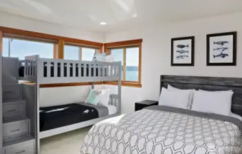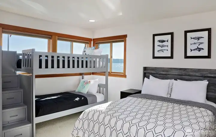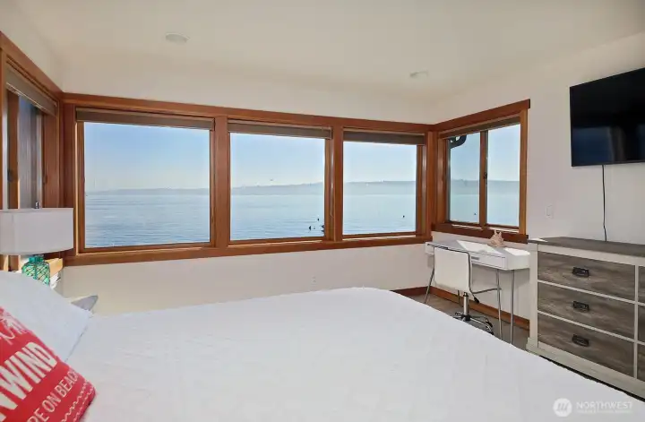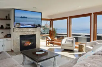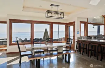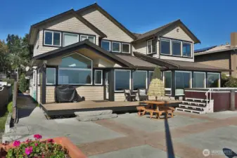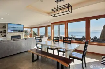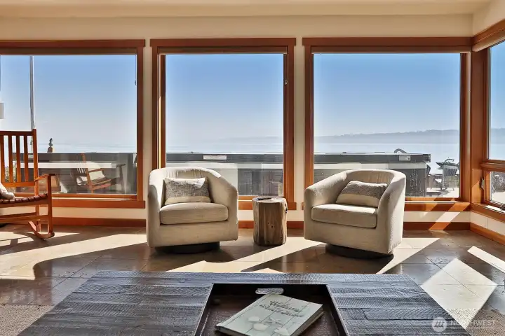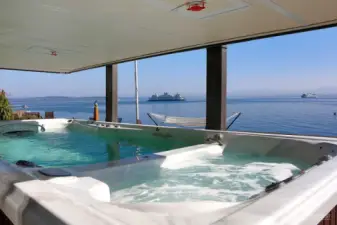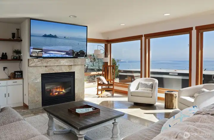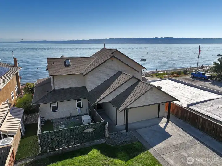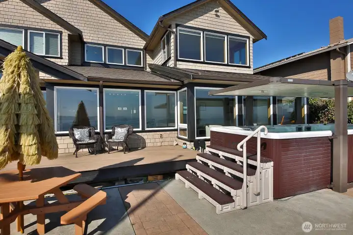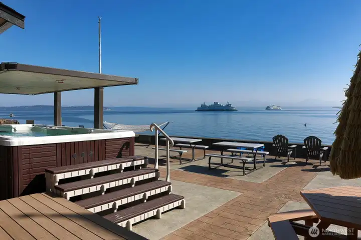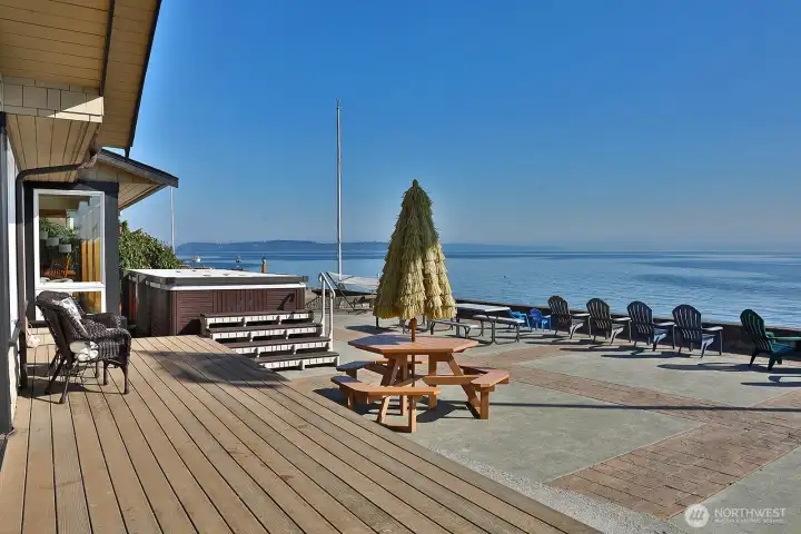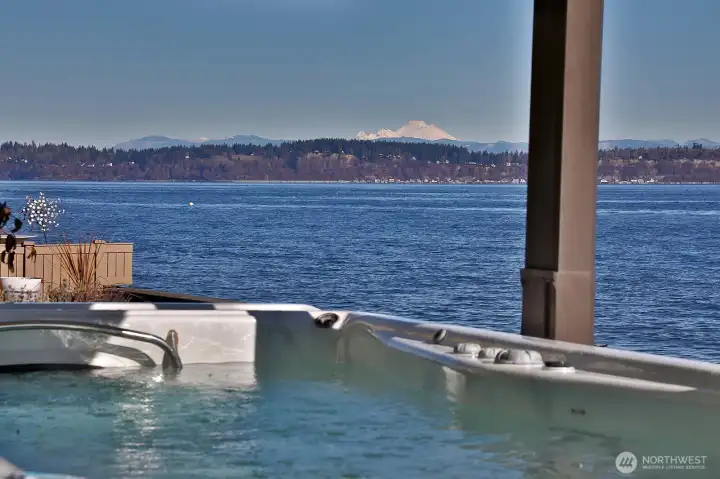 Immaculate waterfront living in Clinton! This beautifully maintained home offers sweeping views of the Cascades, Mt. Baker and the sparkling city lights from across the Sound. Private steps to the beach grant easy access to your mooring ball and vessel for premier crabbing and fishing. Enjoy the spacious concrete patio, perfect for entertaining guests and extremely easy to maintain. The open floor plan is filled with natural light and finished with quality details throughout. This 2-bedroom home offers 3 sleeping areas for larger gatherings. Relax in the 2-in-1 swim spa/hot tub while soaking up the panoramic vistas. Just minutes from the Clinton ferry for a quick commute, and proven short-term rental history adds investment potential.