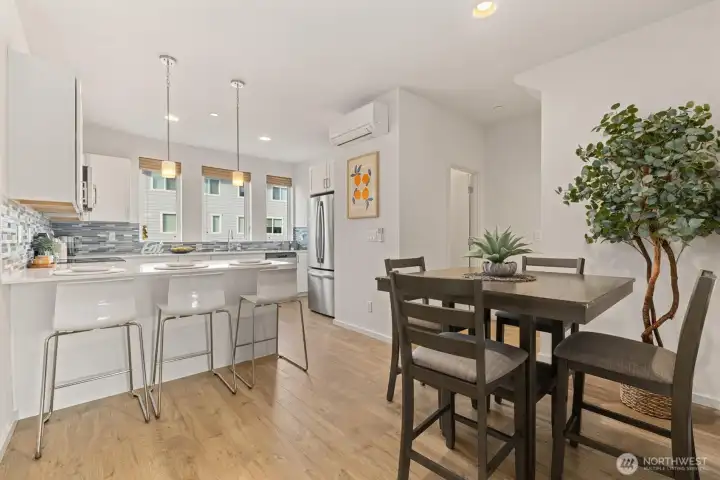 Thoughtfully designed townhome in the quiet, friendly Meadowdale neighborhood! Offering open & inviting floorplan w/ modern conveniences throughout. Kitchen feat. GE stainless-steel appliances, bar seating, & abundant storage including spacious pantry. Generously sized bedrooms, each w/ en-suites. Entry-level en-suite provides direct access to a private exterior deck - ideal for morning coffee or evening relaxation. A/C, driveway parking, & a 1-car garage w/ built-in storage & brand-new water heater, combining functionality w/ ease of living. Centrally located near I-5, shopping, dining, & schools, this townhome effortlessly blends charm, practicality, & convenience. Must-see move-in ready home in a welcoming community. Don't miss it!