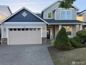 Northwest Contemporary Gem with Solar-Powered Efficiency. Welcome to your turnkey sanctuary! This pristine, freshly painted 4-bed, 2.5-bath home offers the perfect blend of style and sustainability. Imagine the savings with owned solar panels dedicated to powering your lights! Enjoy the main-floor primary suite and a spectacular formal dining room with soaring 20+ ft ceilings and warm hardwood floors, creating a grand, airy atmosphere. The open kitchen boasts a spacious island and flows seamlessly into the firelit living room. Upstairs, a versatile layout offers a private guest/office/flex-space getaway. Located near JBLM and all major amenities, this home delivers space, style, and stress-free living right in the meridian campus area.