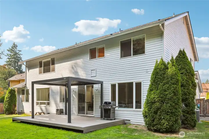 Welcome to this stunning 2-story home in the highly sought-after Gold Creek community! This spacious residence offers soaring ceilings, abundant natural light, and exceptional privacy. Recent updates include a 50-year presidential roof, A/C & furnace, new flooring throughout, and fresh interior and exterior paint. The remodeled kitchen boasts quartz countertops, new appliances, and an open layout that flows seamlessly into the cozy family room with fireplace. Spa-inspired bathrooms provide everyday luxury, while the home’s timeless curb appeal is highlighted by a 3-car garage. Step outside to a fenced backyard with a new Trex deck and retractable pergola, all backing to a serene greenbelt—perfect for outdoor entertaining. Welcome home!
