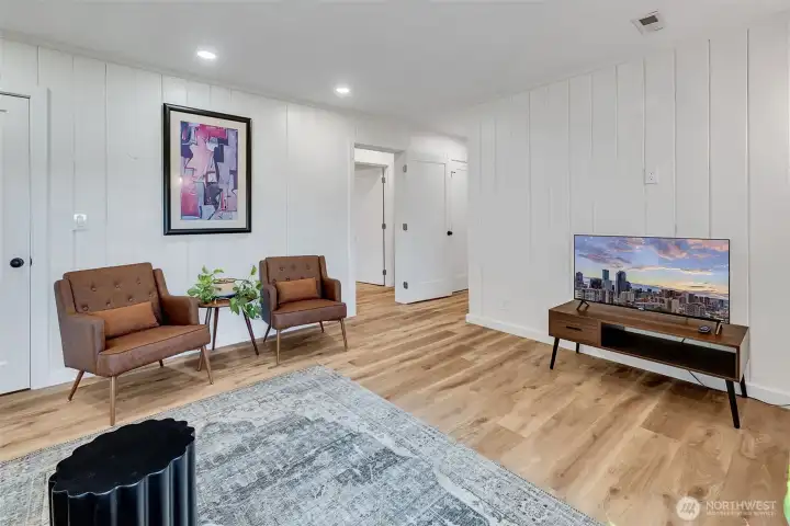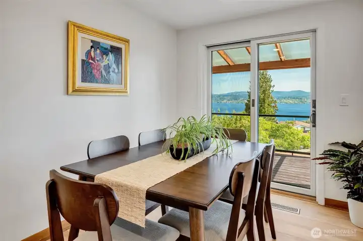 Welcome to this fully renovated home, where no detail has been overlooked. From the moment you step inside, you'll appreciate the refinished wood floors, huge Lake WA views from almost every room & the covered deck. Thoughtfully designed spaces, brand-new kitchens on both levels are perfect for multi-generational living or easy Airbnb. Upstairs, the kitchen boasts gorgeous tilework, new appliances, and a spacious walk-in pantry, two good sized bedrooms and a full new bath. Downstairs, enter into a bright living room with fireplace and huge views, a spacious bedroom w/French doors, separate breakfast bar w/ undermount lighting, new kitchen, spacious bath and laundry room, with a workout room or theater, storage, and a huge fenced yard.