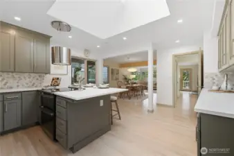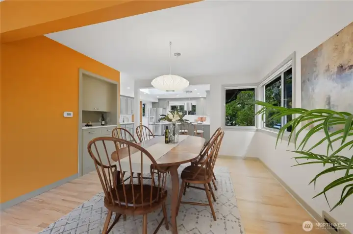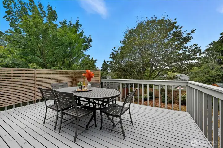 Timeless Mid-Century charm meets elevated modern living in this light-filled home on rare 7,988 sq ft lot. Thoughtful updates feature refreshed hardwood flooring, stylish eat-in kitchen w/quartz kitchen counters, & cabinetry. Flowing floor plan with dedicated dining & living rooms accented by original iconic fireplace, anchoring the main level w/2 beds & full bath. Versatile daylight basement offers 2 beds, ¾ bath, private entries, & flexible living—ideal for office, multi-gen, guest suite, or rental income. Western territorial views from expansive deck & fenced yard. New roof, exterior paint, plumbing, electrical, high efficiency insulation. Attached 1 car garage + N3 zoning for added upside. Near Green Lake, transit, & top-tier amenities.