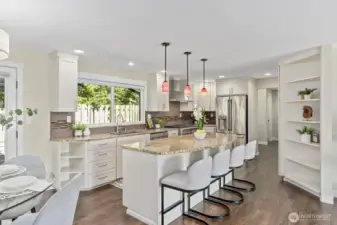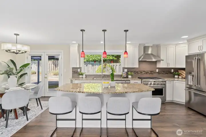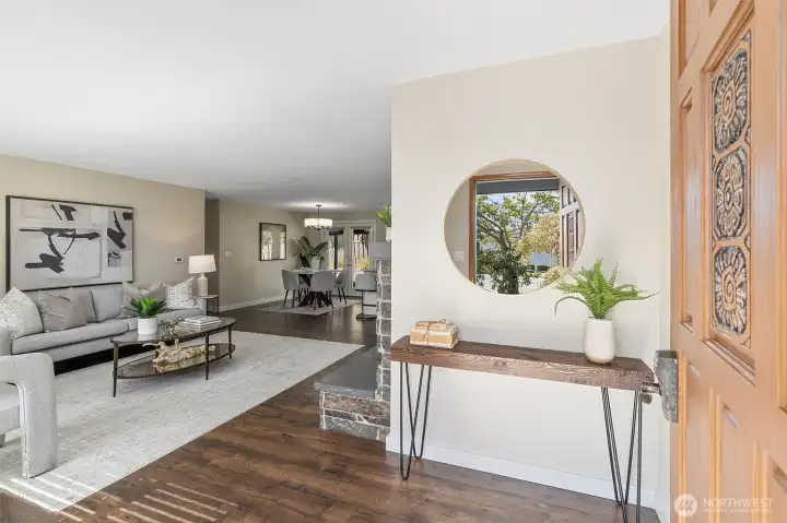 Impeccably maintained one-story rambler on a prominent corner lot in prestigious Uplake. This residence blends timeless updates with enduring quality: 2024 flooring, 2025 exterior paint & landscaping, a 2017 kitchen remodel with quartz counters & custom cabinetry, plus a newer furnace. Granite accents elevate kitchen & bath finishes, while the open floor plan flows seamlessly to a private backyard with covered patio. Oversized 2-car garage with RV parking. Pre-inspected and exceptionally well maintained. Residents enjoy access to the exclusive Aqua Club pool & tennis with effortless access to I-5, 405, and area amenities.
