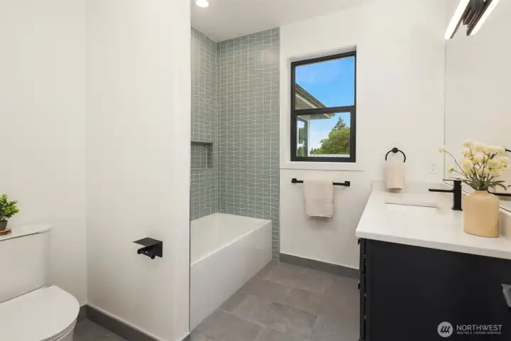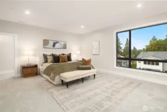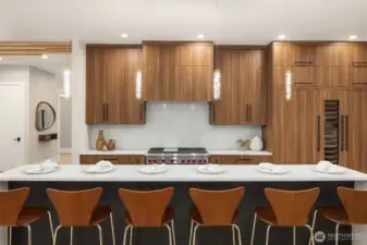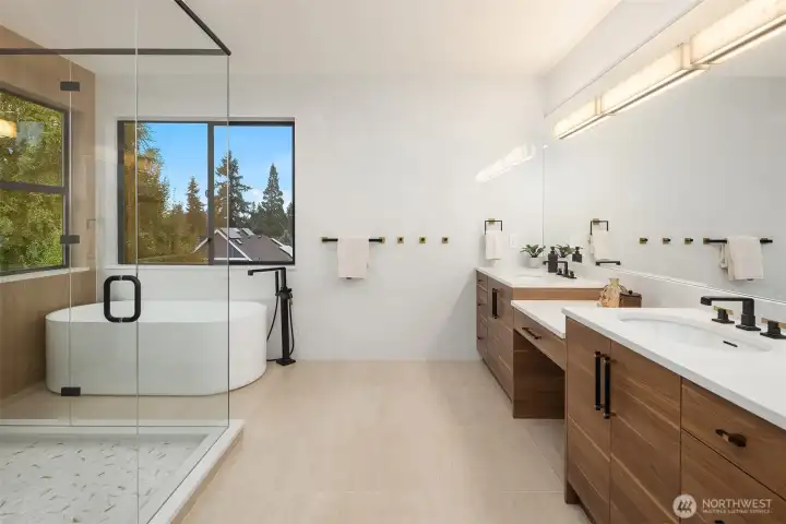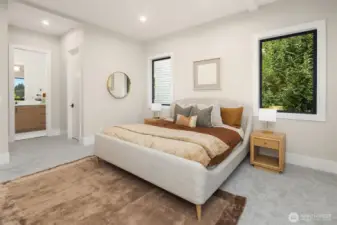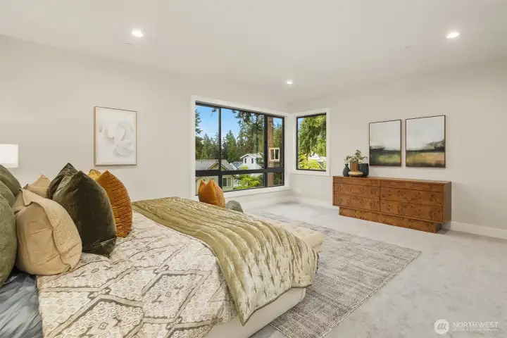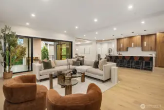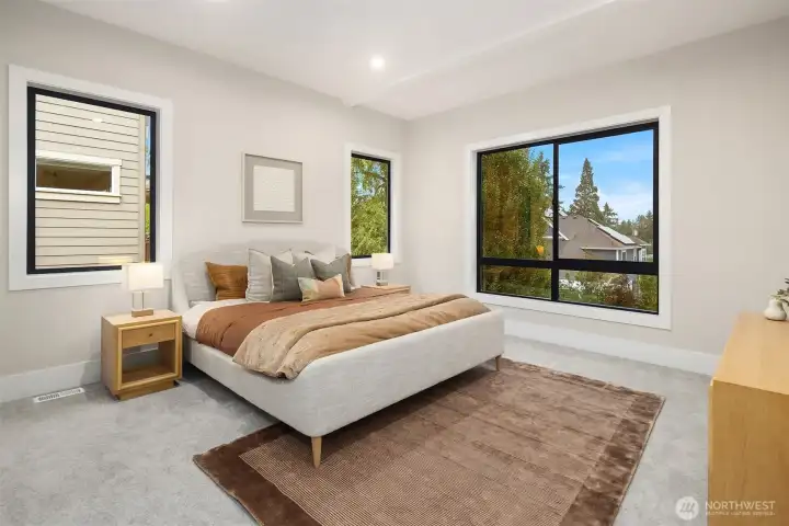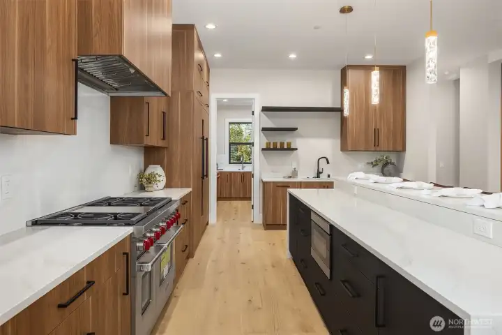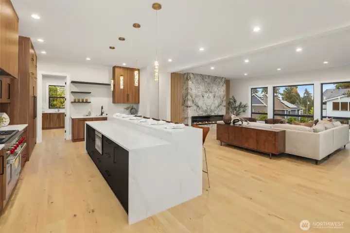 A rare chance to own functional luxury in a 2025 new construction home, thoughtfully designed for multi-generational living near downtown Bellevue. The main level features a sun-filled den, a gourmet kitchen w/quartz counters, Wolf + Sub-Zero appliances, secondary cook’s kitchen, ensuite bedroom, blending elegance w/ practicality. Upstairs, the primary suite offers a spa-inspired 5 piece bath, dual walk-in closets, accompanied by three additional ensuite bedrooms. The lower level provides a fully independent living space w/complete kitchen, bedroom, bath, flex rooms, private laundry, garage with alleyway access. Step outside to a beautifully landscaped, low-maintenance level yard w/automatic gate, providing privacy and sophistication.