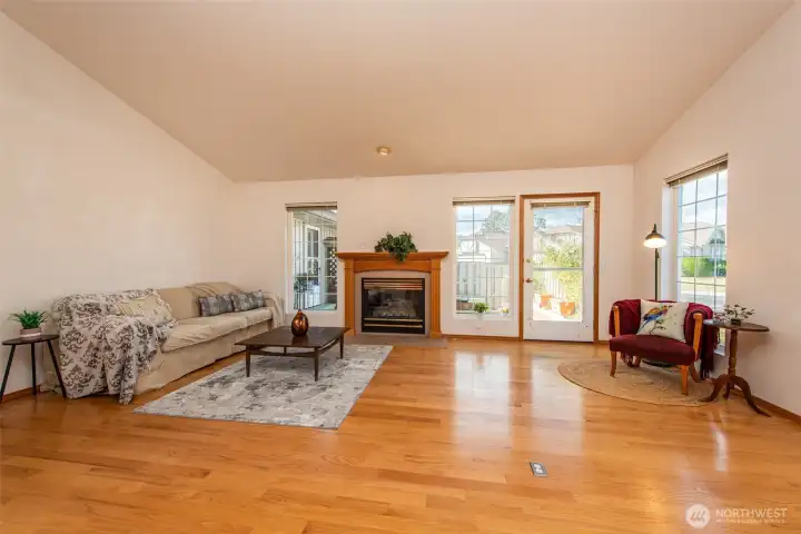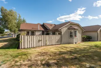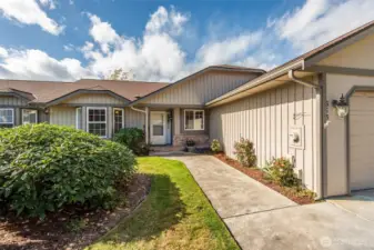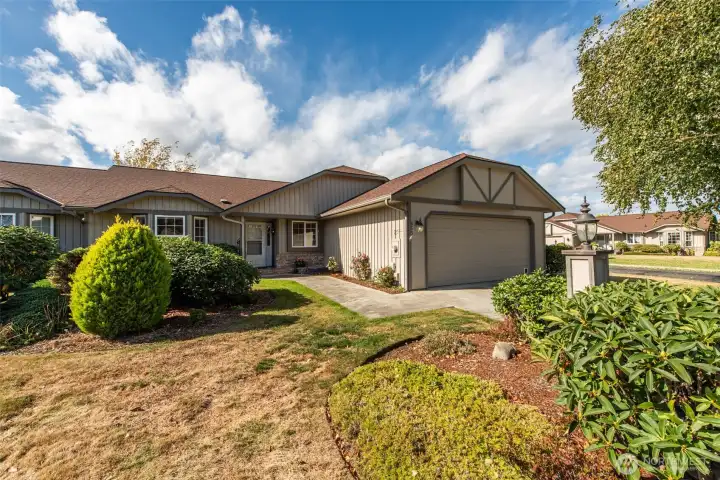 Discover this beautiful 3-bedroom, 2-bathroom condo on a coveted corner lot in Sherwood Village, Sequim. Bathed in natural light this home boasts an open floor plan perfect for modern living. The kitchen features tile countertops and ample cabinetry. Inviting living area with hardwood floors, complete with a cozy propane fireplace, flows seamlessly to a fenced-in patio with southern exposure and soothing fountain - an ideal spot for outdoor entertaining. The primary suite includes a luxurious soaking tub and the laundry room offers cabinets and a sink for added convenience. 2 additional bedrooms and main bathroom with walk in shower. 2-car attached garage. Located near shopping and medical services. HOA dues are $1200 per quarter.