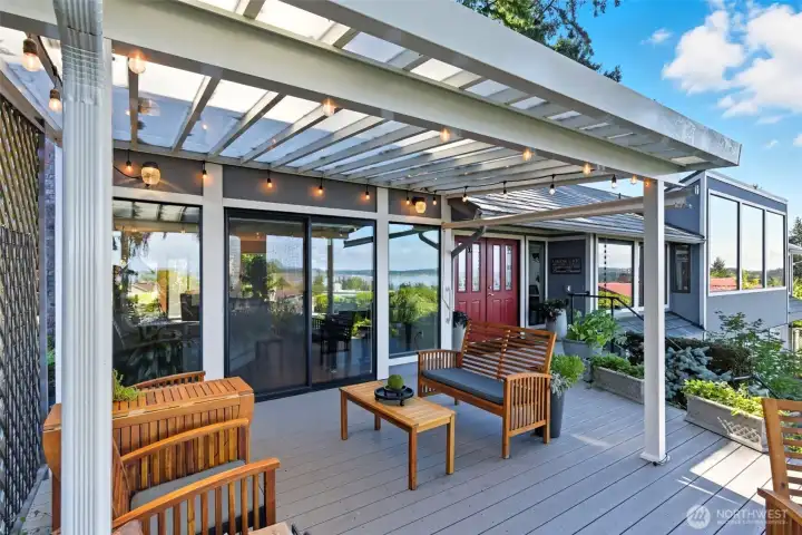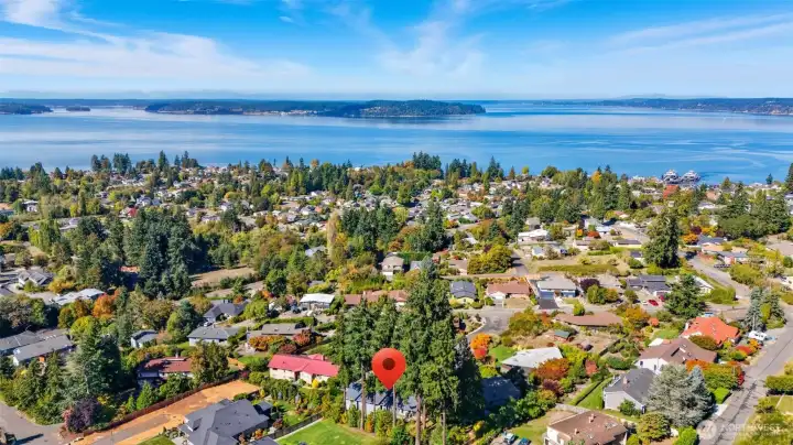 Spectacular 180-degree Puget Sound views command immediate attention from this stunning residence in historic Steilacoom. These breathtaking vistas transform every moment within this meticulously maintained home into a living masterpiece. The heart of this exceptional property lies in the"eat-in" chef's kitchen boasting double ovens & gas cooktop, the panoramic water & majestic mountain views provide a stunning backdrop for meal preparation. Brazilian cherry hardwood flooring throughout the main floor & new gas fireplace provides a captivating focal point. Dedicated office space caters to modern professional needs. Flourishing low-maintainance garden areas adorned with established fruit trees creating your own private orchard sanctuary.