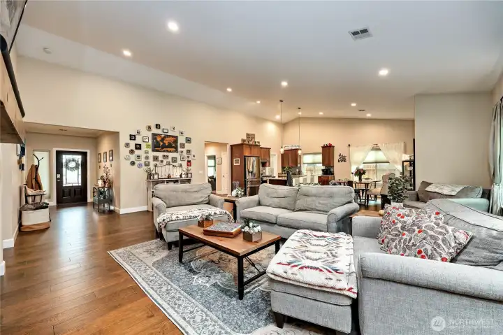Welcome to this special community, it is all about convivence close to walking trails gym, coffee, restaurants, schools, YMCA and More!! Lovely rambler with great open concept vaulted ceiling cozy gas fireplace. Kitchen has stainless steal appliance, plenty of storge with a large counter bar area opening to dining area.3 bedrooms1/34 bath and den too! Wonderful front yard with drip system, fenced back yard with great covered patio and full sprinkler system