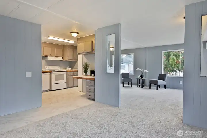 Beautifully remodeled double-wide home with a fenced backyard! Enjoy all-new flooring, fresh paint inside and out, updated sinks and countertops, new carpet, new lighting in & out, and a brand-new front entry deck. All-new appliances complete this move-in ready home. Small pets are welcome with park approval. Buyer must obtain Park Manager approval prior to an offer being accepted.