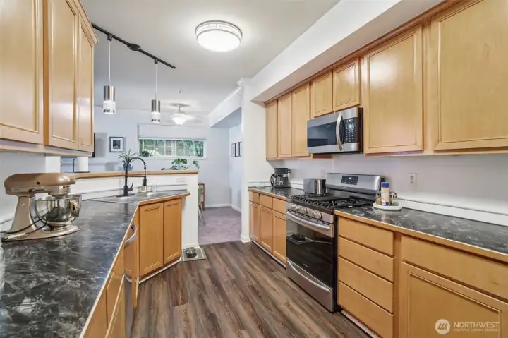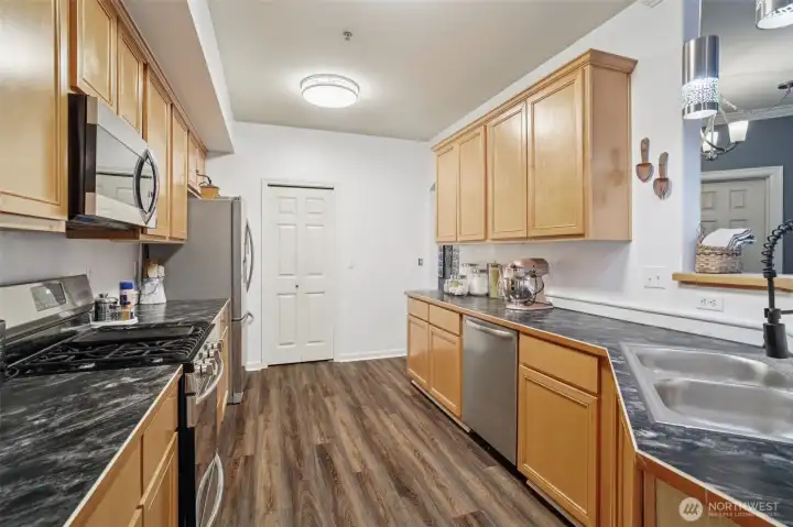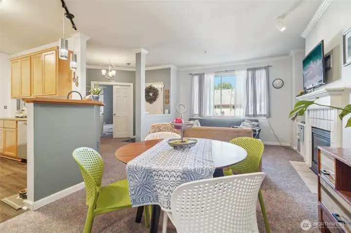 Imagine yourself living in this private end-unit condo with 2 bedrooms, 2 baths, and a versatile den. Wake up to peaceful green space on two sides, sip coffee on the covered entry patio, or unwind on the private patio off your primary suite. Fresh paint, new carpet, updated appliances, and a new water heater make moving in effortless. Enjoy weekends at the clubhouse and BBQ area, or join access to the pool and gym. With a garage, driveway, and guest parking nearby, plus easy access to I-5, Hwy 167, upcoming light rail station, Southcenter, schools, and parks. You’ll love calling this home.
