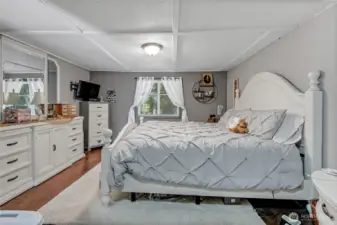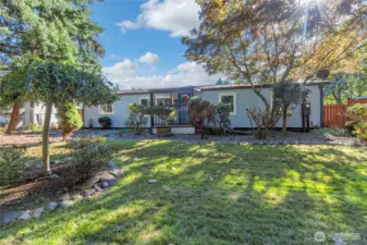 Affordable living in ALL-AGES Shiloh Park! This 3-bed, 2-bath, 1,404 sq ft home sits on a rare .29-acre leased lot with mature landscaping, fruit trees, and great parking. Enjoy a refreshed kitchen with an island, granite tile counters, updated cabinets, tile backsplash, and modern appliances—all included! Stay comfortable year-round with a cozy wood stove and efficient mini-split for heat and A/C. Relax on the covered back deck and appreciate the fully fenced back yard which has a hot tub, greenhouse, fish pond, two storage sheds and even comes with firewood. The roof, gutters, and siding were replaced in 2014. Shiloh Park is an all-ages community with spacious lots and affordable space rent. Don’t miss this opportunity!