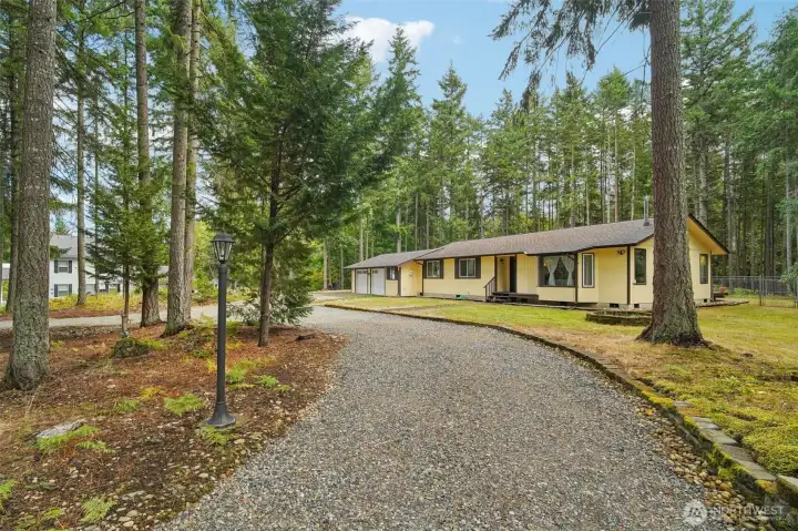 Charming 1.18-acre property offering privacy, space, and versatility. Tucked away on a private road, this beautifully maintained home features a spacious two-car garage plus an additional shop/outbuilding—perfect for hobbies, storage, or future projects. The fully fenced yard includes dedicated RV parking and is served by a reliable shared well. Mature trees and thoughtfully placed pathways create a peaceful outdoor retreat with plenty of room to garden, entertain, or expand. Located in a quiet, established neighborhood with convenient access to schools, shopping, and amenities.