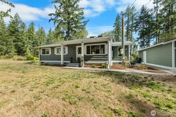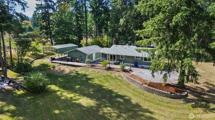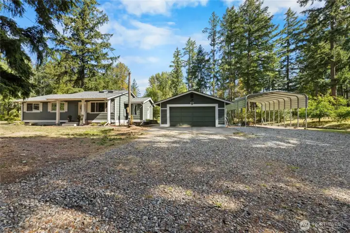 Discover your perfect blend of comfort and privacy in this tastefully remodeled 3-bedroom, 2-bath rambler on almost 2.5 fully fenced acres. Tucked away behind gated entry, this home offers ample parking, a spacious two-car garage with extra storage space and covered RV parking—ideal for all your vehicles, tools, and toys. Enjoy stylish updates throughout with light-filled living spaces and modern finishes. Step outside to your own private retreat featuring expansive grounds and a cozy firepit area perfect for entertaining or unwinding under the stars. Move-in ready and packed with possibilities! Garage Roof replaced in 2023, main house in 2018, mini splits in all rooms installed in 2024, 50-amp generator hook up and with updated panel.
