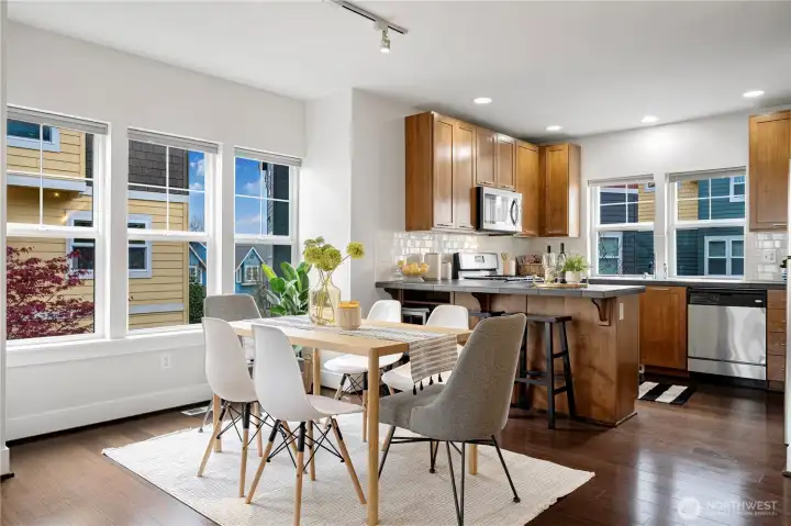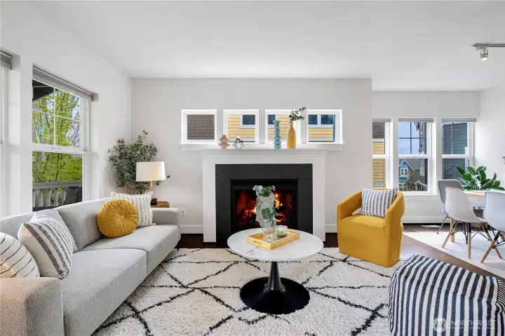 Welcome to this exceptional townhouse located in the most popular High Point neighborhood of West Seattle. Not your average townhouse, this home lives like a single family home with an attached garage. Main level is ideally set up with an open kitchen, spacious formal dining room, and cozy great room with fireplace, perfect for entertaining! Thoughtfully designed 2 bedrooms with a den, a primary suite with a walk-in closet, and a second bedroom with a full bathroom. Enjoy easy access to shopping, parks, a library, and freeways.This home is a must see!!!