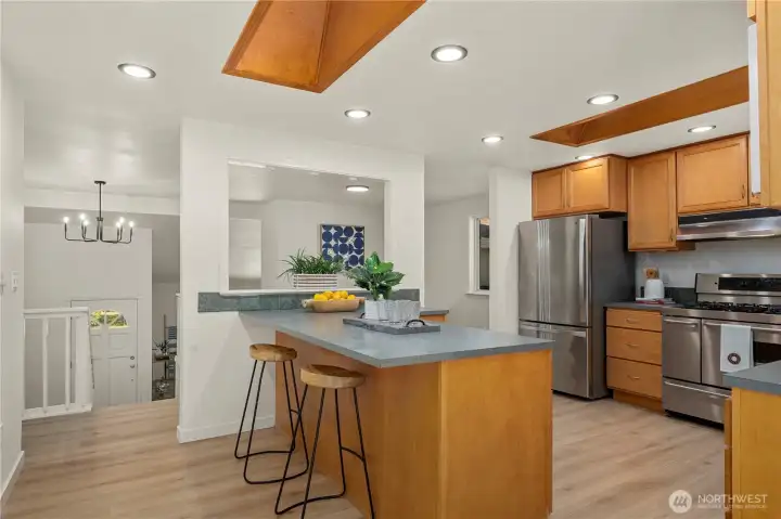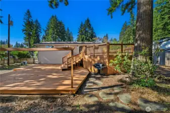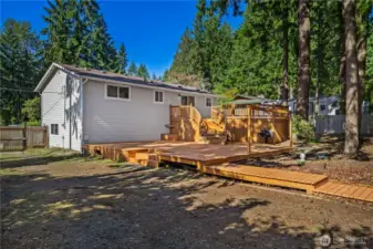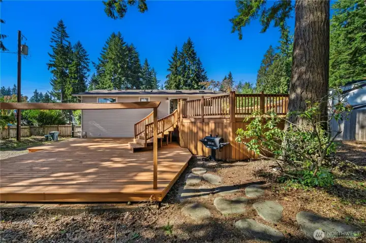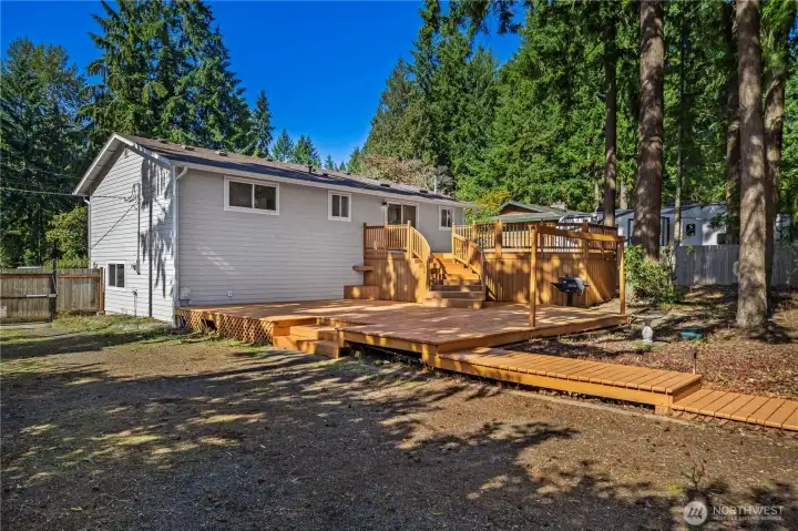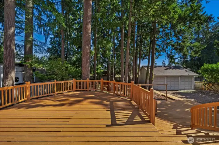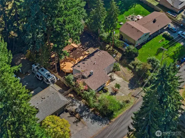 Set on a 16,000+ sqft lot backing to a peaceful greenbelt, this updated tri-level home offers 3 bedrooms, 2.25 baths, and 2,232 sqft with detached huge shop/garage. Inside, you’ll enjoy an open kitchen with a 36” gas range & skylights, 2 fireplaces, new flooring, and fresh paint inside and out, with newer roof, siding, and windows. The fully fenced yard features towering trees, gated entry, garden shed, and a tranquil hammock arbor. An expansive triple-tier deck is perfect for relaxing or entertaining. A detached 36’x30’ THREE-BAY SHOP with loft and RV parking provide ample space for hobbies, vehicles, and storage. Don’t miss this rare combination of space, privacy, and convenience — all just minutes from local amenities.
