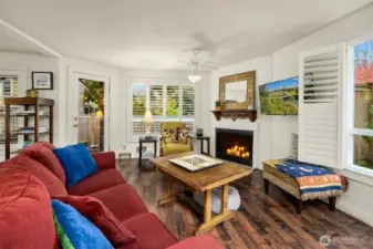 Charming Bainbridge Condo in the heart of downtown Winslow. Enjoy the perfect blend of comfort and convenience in this 3-bedroom, 2-bath ground-floor condo, just a short walk from boutique shops, cafes, shopping, parks, and the ferry. Inside, the home features elegant plantation shutters and a warm, inviting atmosphere throughout. Relax on your private patio with a small garden—ideal for morning coffee or unwinding in the evening. The unit also includes two dedicated parking spaces, an electric vehicle charging outlet, and extra storage, making it perfect for friends, visitors, or longer stays. Comfortable, stylish, and well-located, this condo is your home base for exploring all that Bainbridge Island has to offer.