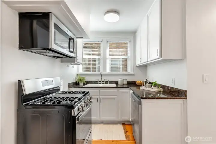 Beautifully affordable! This two bedroom + loft / two bath classic townhome should be first on your list. It starts with an unbeatable location: a quiet, peaceful perch – with amazing light from easterly views – just moments from Magnolia Village, Discovery Park, Queen Anne, Ballard, Fisherman’s Terminal and…downtown Seattle close at hand. You’ll relax and host in a home with character: wood floors…art hung from classic picture rail. You’ll gaze through evergreen trees to the Ship Canal, Cascades, Space Needle and sparkling lights from boats on Elliott Bay. Each level has a bedroom with adjacent bath; one with a loft and the other with a garden space just outside the door. Met Market, Whole Foods and more are so close. Come take a look.