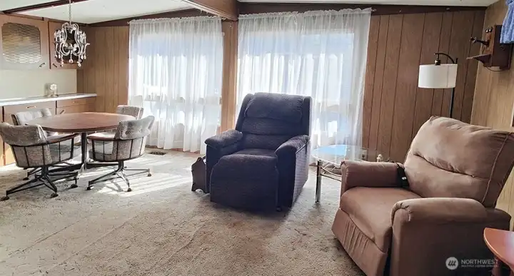 Doublewide in 55+ Senior park close to shopping and freeway access. This 3 bedroom with1.75 bathrooms is rare in this MHP. Corner lot with an Enclosed garage attached to the mobile. This lot has a low maintenance fenced back yard with plenty of storage in the sheds. Don't wait, the park rent is very reasonable.
