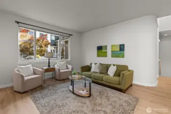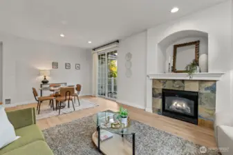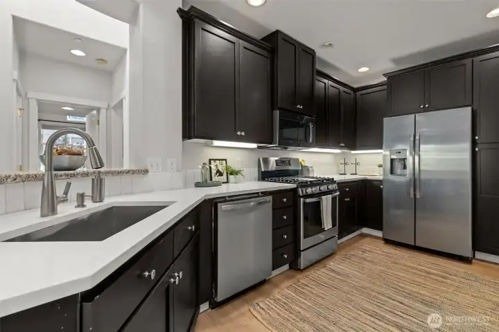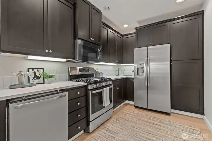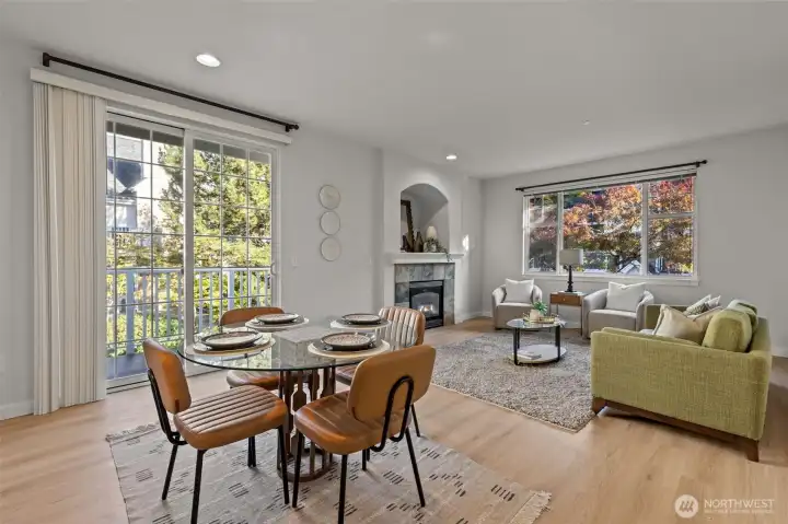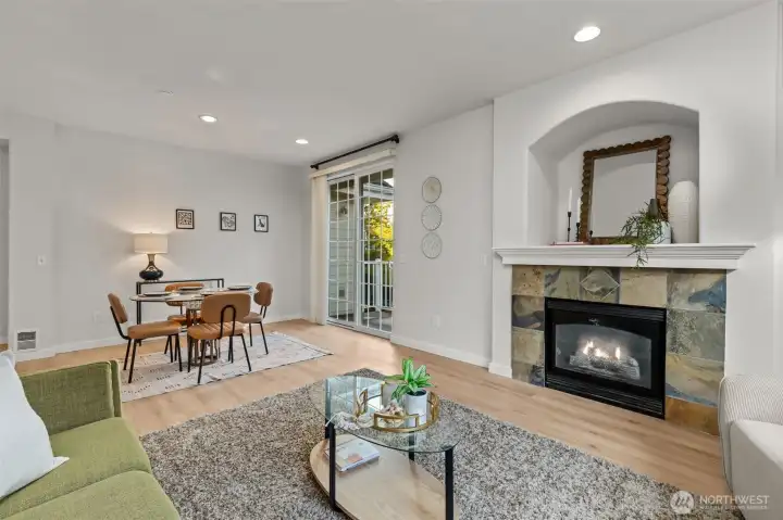 Perfectly situated in the heart of Issaquah Highlands, this light-filled and desirable end-unit townhome offers a rare blend of style, convenience, and comfort. Step inside to find new flooring and paint throughout, with open-concept design featuring a beautifully updated kitchen with SS appliances and quartz counters. The spacious living and dining areas are enhanced by oversized windows and a cozy gas fireplace, with a private balcony. Retreat to the well-appointed primary suite with vaulted ceilings, dual closets, and a luxurious 5-piece bath. Oversized garage w/ ample storage. Enjoy the unmatched amenities of the Highlands, steps to dining, shops, entertainment, trails, and parks, with quick freeway access and coveted Issaquah SD!