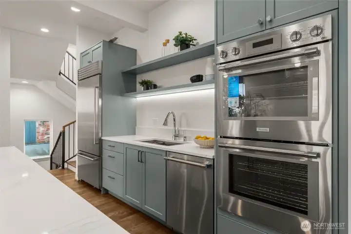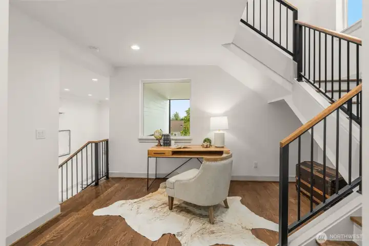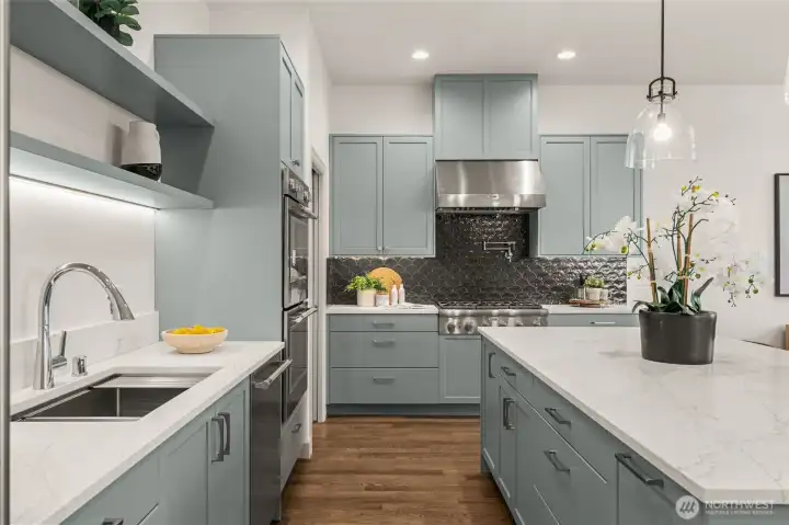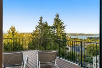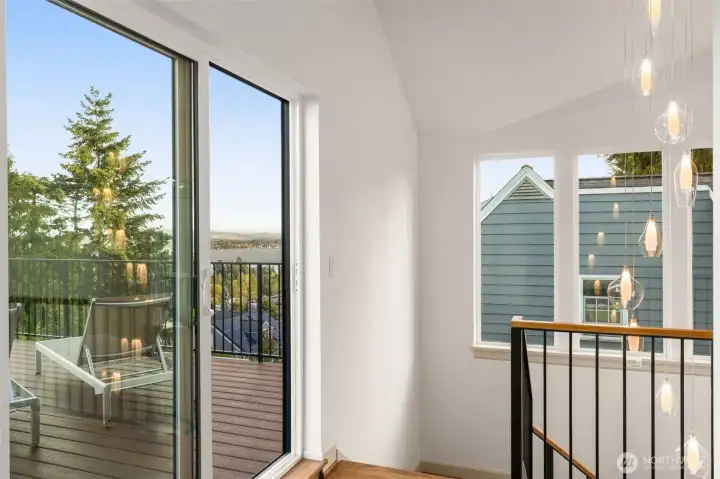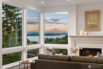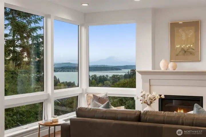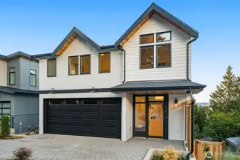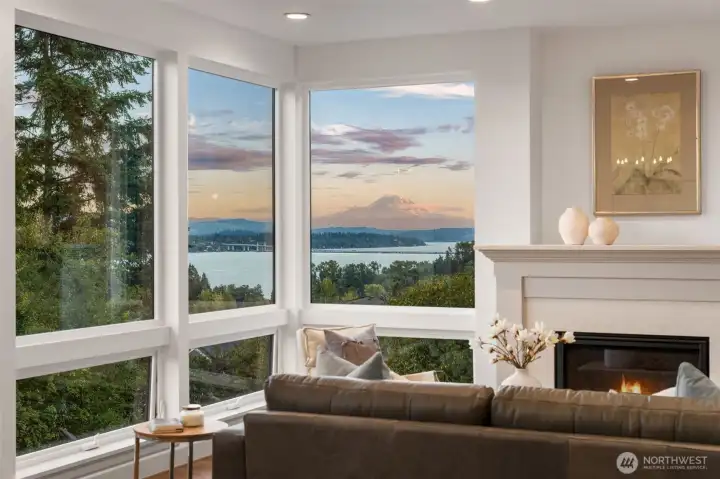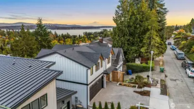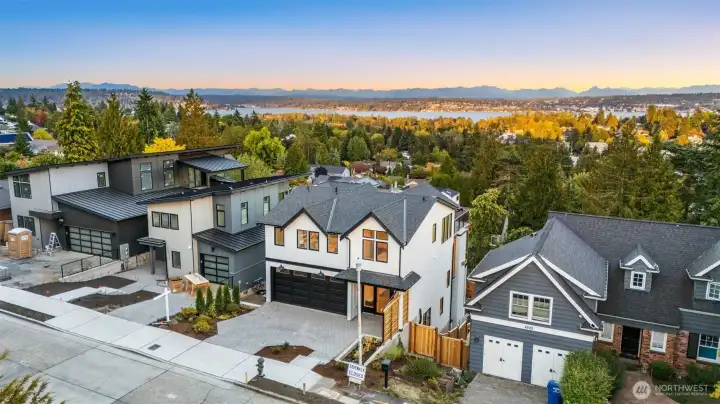 Perched in sought-after Hawthorne Hills with stunning Lake Washington & Mt Rainier views, this new construction home blends modern luxury with thoughtful design. The open-concept main level features a gourmet kitchen with Sub-Zero fridge, Thermador stainless appliances, walk-in pantry. Floor-to-ceiling windows flood the space with natural light. The upper level offers a luxe primary suite w/5-piece en-suite bath. Private view deck, two additional bedrooms, convenient laundry. The lower level includes a large rec room, bedroom, bath, and covered deck with gas fireplace—ideal for entertaining. A mudroom off the 2-car garage adds functionality, while mini splits provide year-round comfort. This is Northwest living at its finest