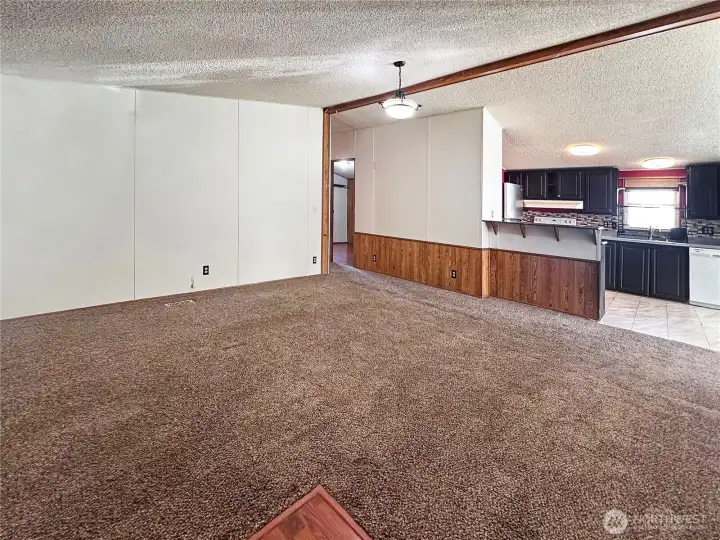 Welcome to Skylark Village Estates II, blocks from schools and parks, and minutes from shopping, 164 and Hwy 18. This open floor plan includes vaulted ceilings, a generous family room, a spacious dining area with lots of natural light & large kitchen. The primary suite offers a private full bathroom. Enjoy the convenience of a dedicated laundry room with washer & dryer, two outdoor sheds & a covered carport next to open space and guest parking. Cosmetic updates are needed, but you can make this home your own with a little TLC, or remodel and really see this home shine. Don't miss this unique opportunity to own this home on a fantastic lot in an all ages park.