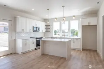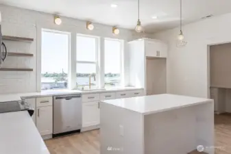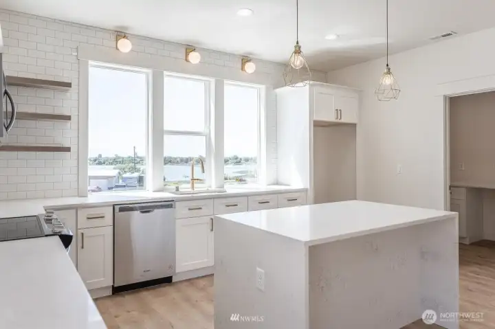 This upgraded 3BR/2BA home is on a large 1/4 acre lot with gorgeous lake views! Open layout with laminate flooring in the main areas, cozy carpet in the bedrooms, tiled bathrooms, and granite countertops throughout. The spacious kitchen features large windows overlooking the lake, granite waterfall island, oversized walk-in pantry with extra counterspace and prep sink. Additional upgrades include 12 solar panels for energy savings, fully finished 2-car garage with electric vehicle charging, whole-home water softener system. The low maintenance property is ready for relaxation or entertaining with a covered rear patio, gutters, 12x15 storage shed. All appliances, security system and TVs are included. Come see this sparkling beauty!