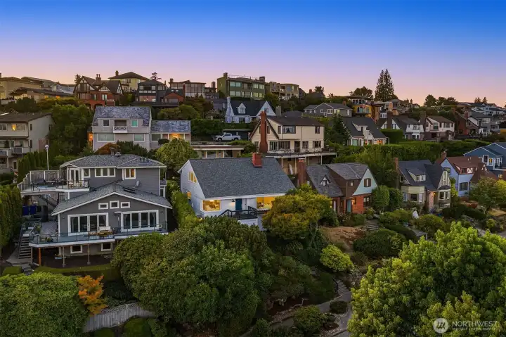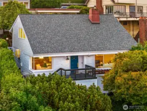 A perfect blend of old-world charm & modern sophistication, this Magnolia home offers a rare combination of beauty and function. Stunning SE-facing views extend from Mt. Rainier to the Space Needle. The versatile floor plan includes 3 bds up, 1 on the main & 1 huge bd down. You’ll love how this house flows! Design features include vintage brass & iron railings, exposed brick, vaulted ceilings & original midcentury-built-ins. Completely-renovated daylight basement features new kitchen, bth, flex rm & large living/media/rec space — use as ADU if desired. Enjoy newly landscaped backyard/patio & carport for 2 + storage (easy alley access). Located in the coveted neighborhood of Carleton Park & just blocks from shopping/dining in the Village.