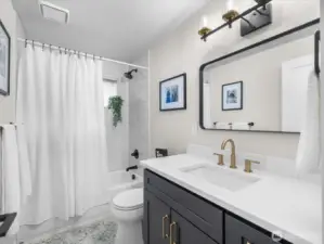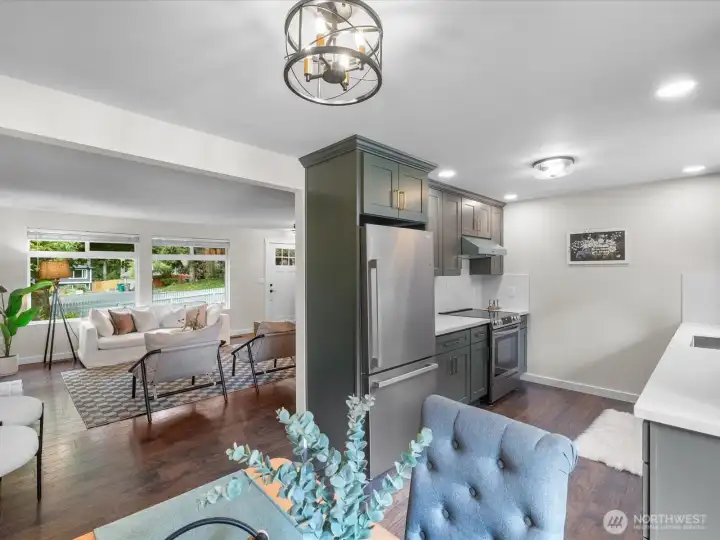 This adorable Alderwood Manor home is tastefully remodeled & will fulfill your white picket fence dreams! Beautifully renovated kitchen from top-to-bottom, NEW: Stylish green cabinetry, champagne bronze hardware, slab quartz counters, & SS appliances. Other updates include, NEW: Int & ext paint, light fixtures, doors, water heater, crawlspace revamp & more! The main floor has 2 rooms w/ closets + full bath w/ new tub, tile, vanity, & fixtures. Upstairs lives like a primary suite w/ large bedroom, 3/4 bath, & office w/ built-in shelving. One-car garage, plenty of parking space on the freshly sealed driveway, & the yard was just hydroseeded. Excellent location - Mins to I-5, I-405, Whole Foods, Alderwood Mall, light-rail station, & schools.