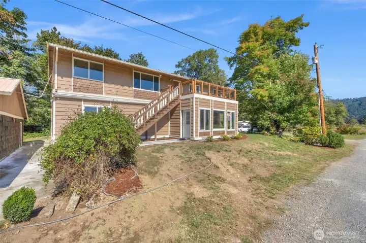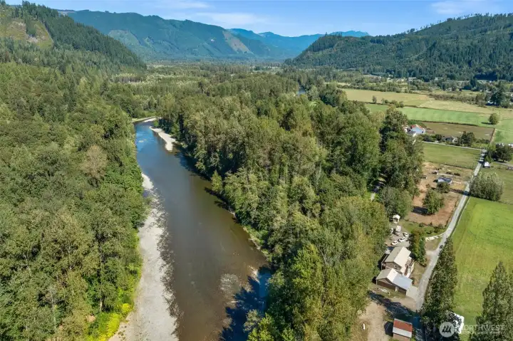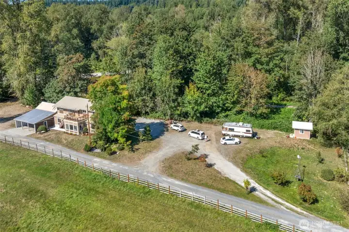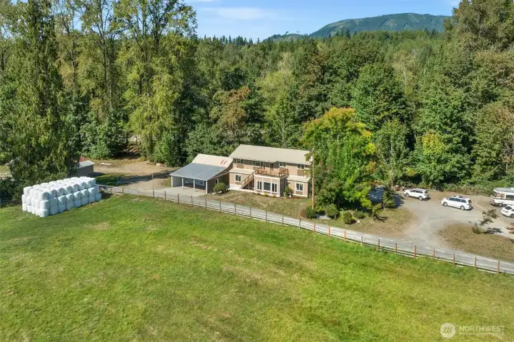 FISH ON!! Approximately 150 feet from the Stilly. Easy commute to I-5 and only 4 miles from the Arlington bridge. Outbuildings include a 3 car garage and dry storage. Level lot backs to the White Horse Trail then just feet from the Stilly. Huge building lower floor perfect for winery or craft beer room, day care, or a gym. Wide open spaces plus a plant room. Huge view deck and there are views in every direction.