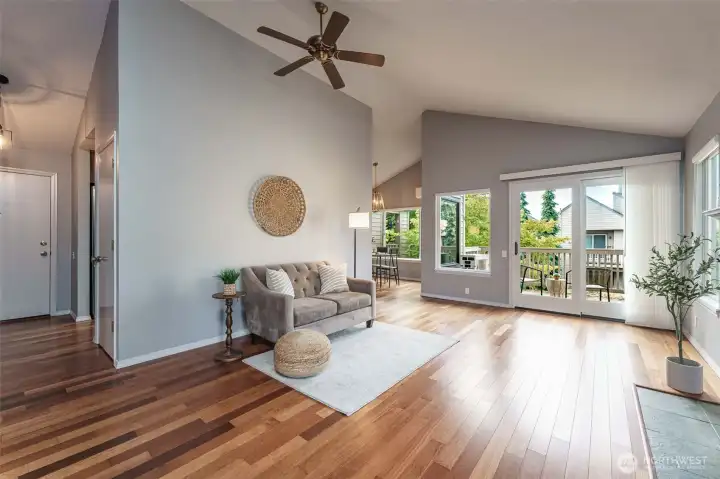 Step into comfort and easy living in this updated 2-bed, 2-bath condo in Vancouver’s desirable Fairway Village. Overlooking green space and a golf course, enjoy peaceful views from your covered balcony. Inside features include engineered hardwood floors, vaulted ceilings, and a tile-wrapped fireplace. The remodeled kitchen boasts quartz counters, new cabinetry, and a designer tile backsplash. Both bathrooms are stylishly updated with modern fixtures. This 55+ community offers a clubhouse, golf course, pool, fitness center, and social events—all minutes from shopping, dining, and parks. Low-maintenance luxury meets vibrant community living.