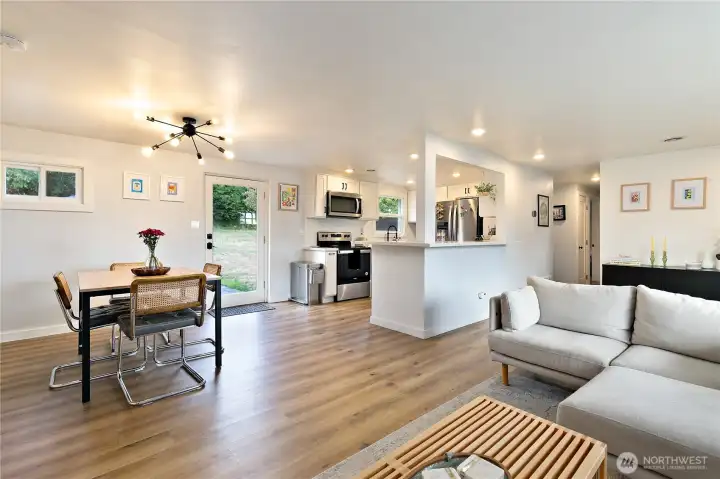 Nestled in desirable North Tacoma, this recently remodeled rambler blends comfort & style with fresh interior bedroom paint, new flooring, a designer kitchen, and a beautifully updated bathroom. The bright and airy open layout makes the most of its efficient 3 bed/1 bath, 1,100+ sq. ft. floor plan. Step outside to enjoy a brand-new custom patio with in-ground lighting, perfect for gatherings or quiet evenings, along with a spacious fully fenced yard featuring fruit trees and plenty of room to play or garden. Complete with recently added heat pump for heating and cooling, new water heater, and new sewer line installed in 2020. Just blocks from Downing Elementary, Kandle Park, Proctor District, Point Defiance, Point Ruston, & local markets.